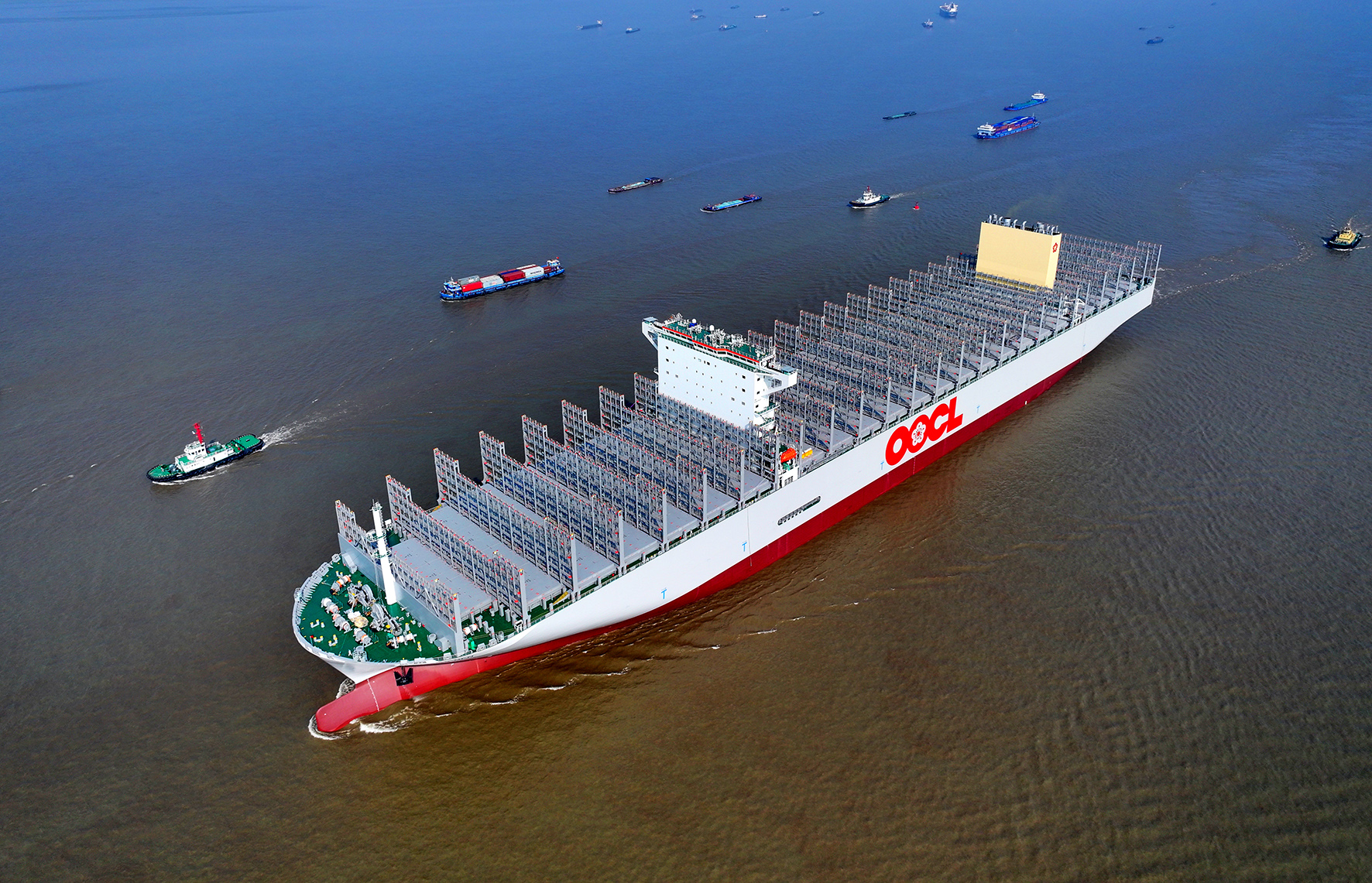 5月7日,在江蘇南通海事、邊檢等部門的保障下,全球重箱裝載量最大集裝箱船在南通中遠海運川崎碼頭出海試航。