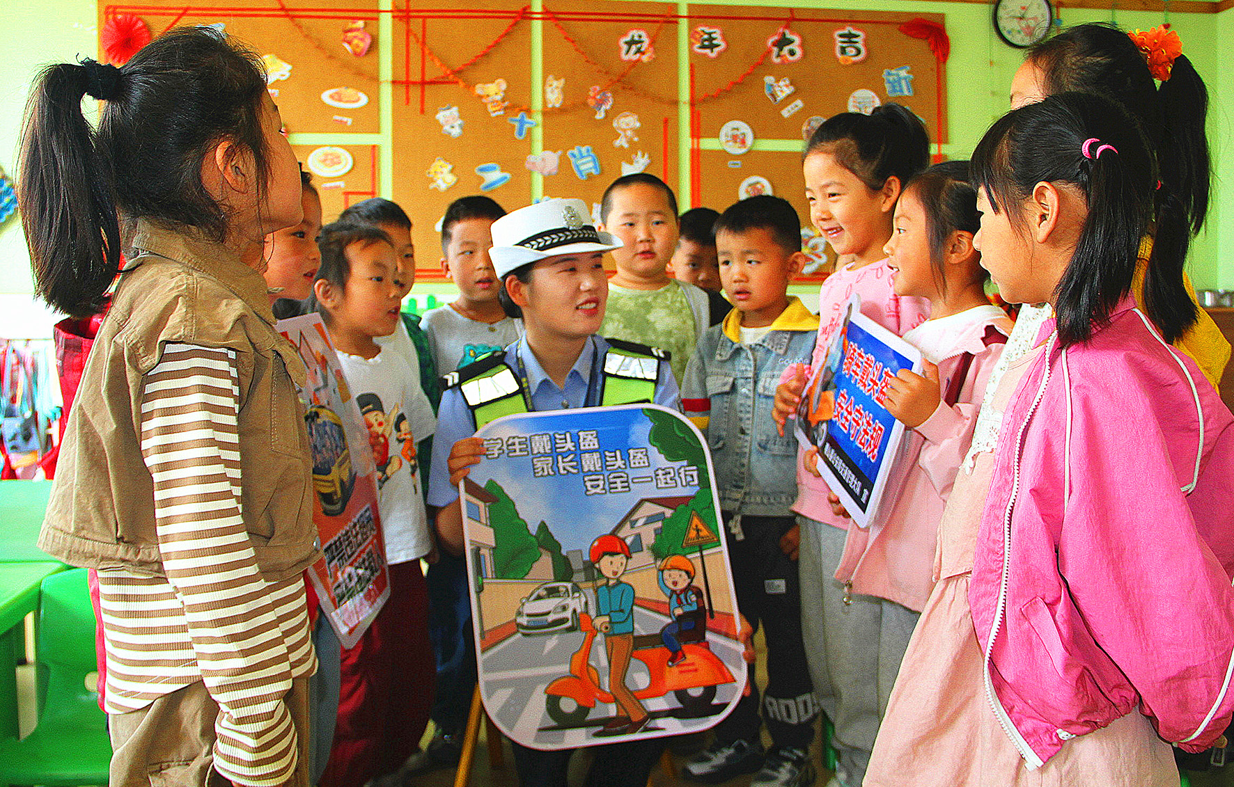 5月7日,山西省稷山縣公安局交通管理大隊(duì)宣傳民警走進(jìn)稷峰鎮(zhèn)南陽(yáng)村幼兒園,通過(guò)看圖學(xué)安全、互動(dòng)搶答游戲等方式,讓孩子們?cè)谠⒔逃跇分袑W(xué)習(xí)交通安全知識(shí)。