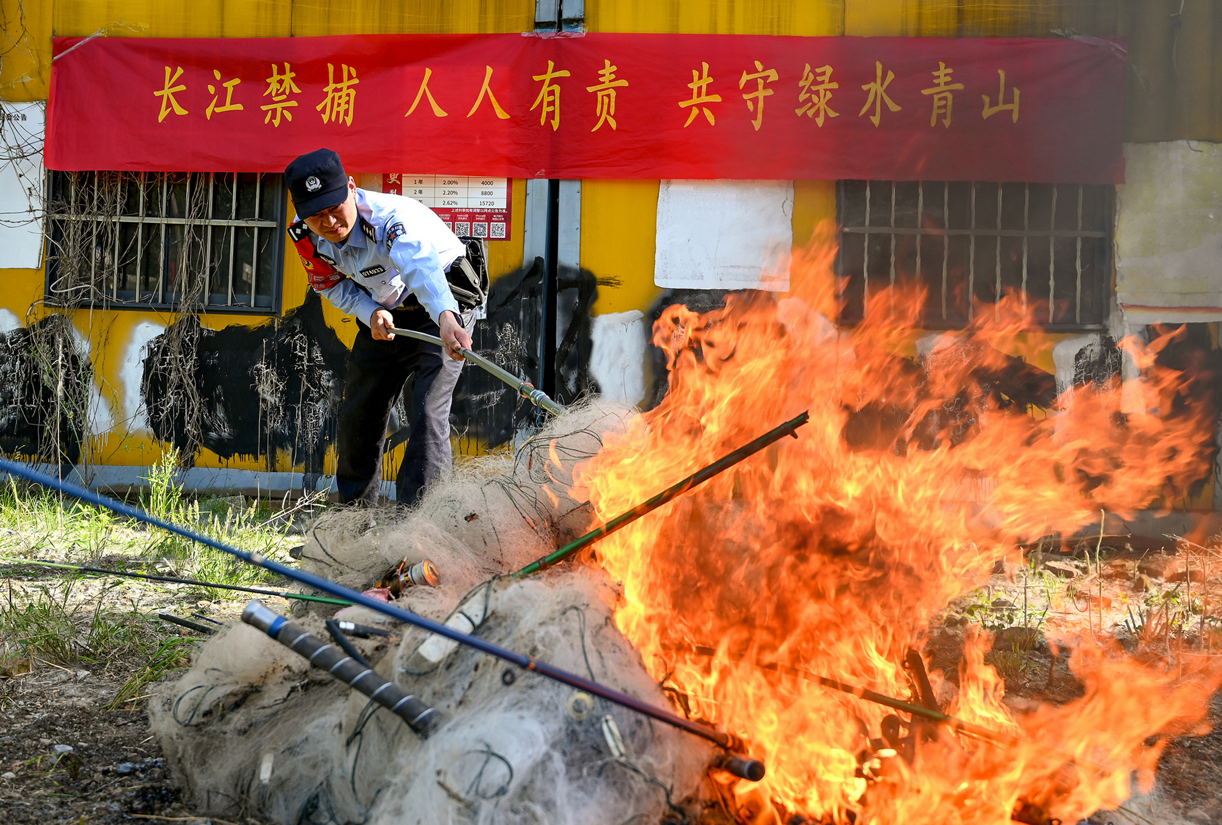 5月13日,安徽省馬鞍山市和縣公安局聯(lián)手漁業(yè)部門對(duì)依法收繳的“非法捕撈”漁具進(jìn)行集中銷毀。為鞏固長江流域“十年禁漁”決策部署,和縣公安局聯(lián)手相關(guān)職能部門,嚴(yán)查非法捕撈、違規(guī)垂釣等行為,全力推動(dòng)長江“十年禁漁”政策有力有效,行穩(wěn)致遠(yuǎn)。