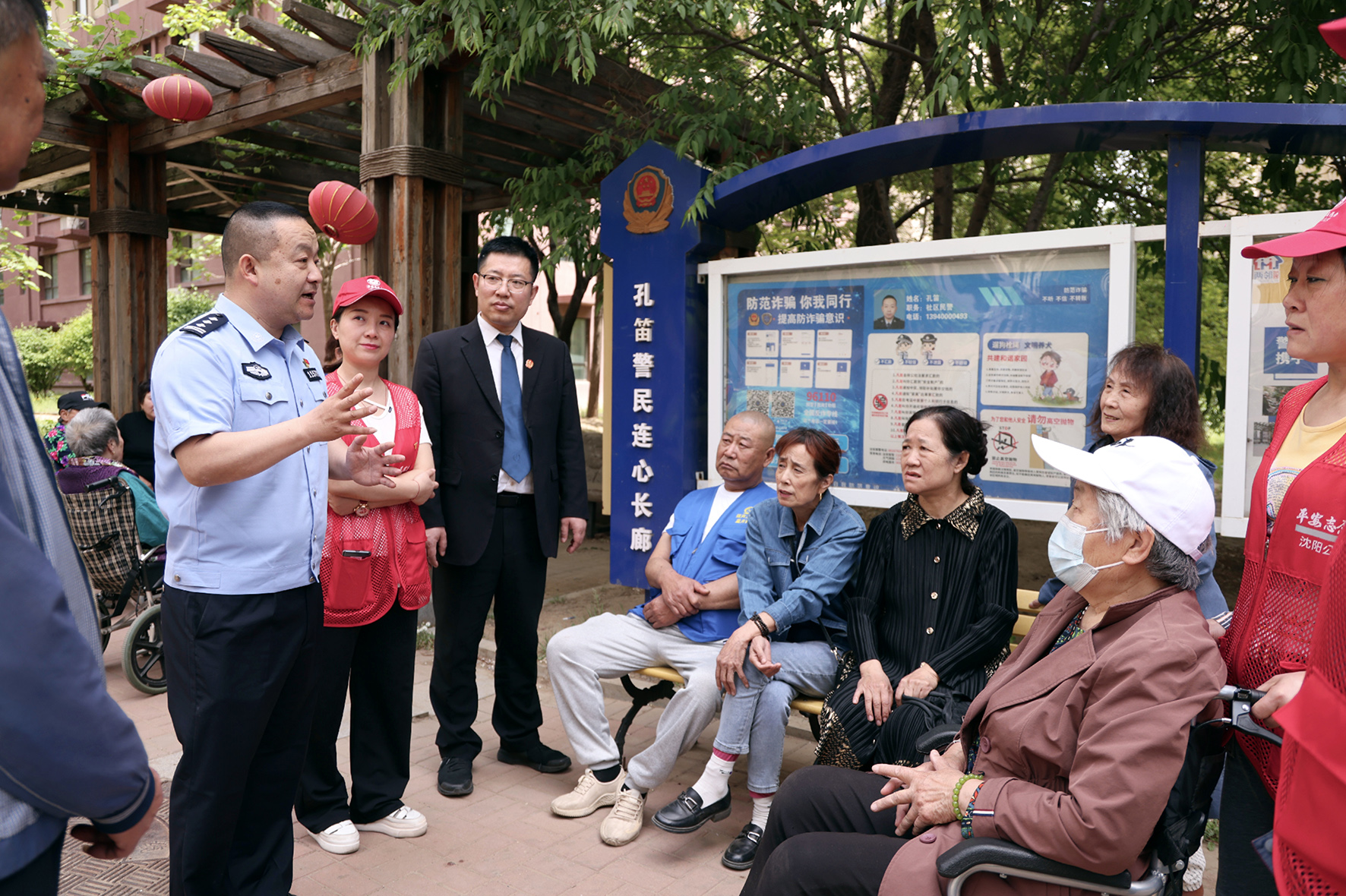 圖為5月14日,民警與法官向老年人講解如何利用法律知識化解鄰里糾紛。