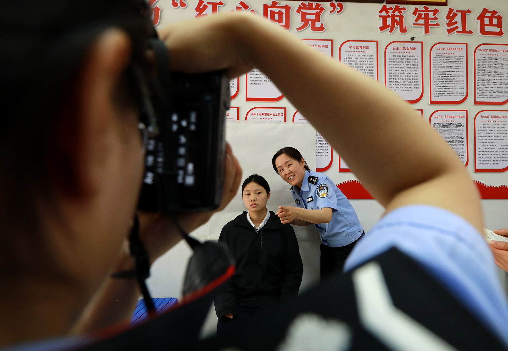 圖為5月16日,曹城派出所戶籍民警在曹縣第三中學(xué)為學(xué)生拍照辦理身份證。
