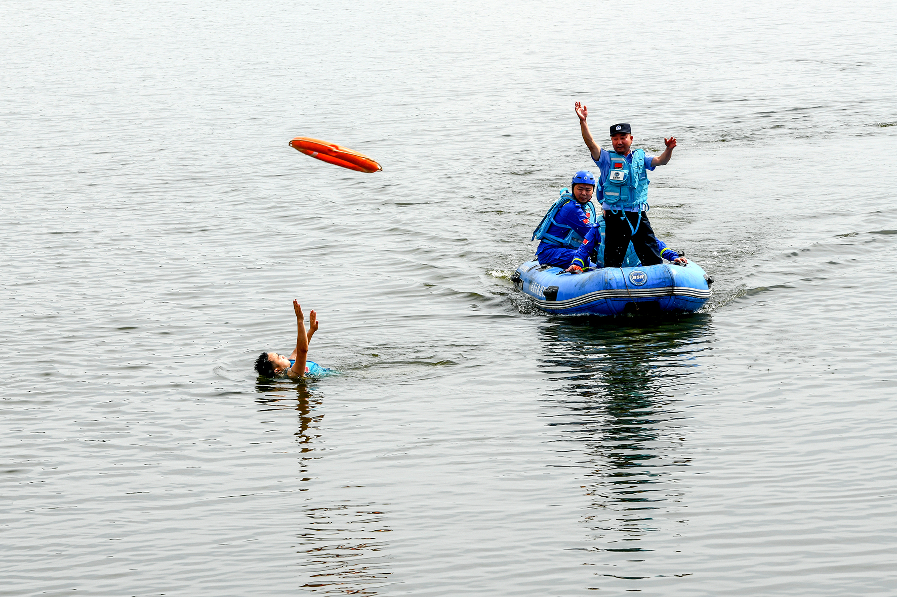 5月22日,安徽省馬鞍山市和縣公安局聯(lián)手藍天救援隊在如山湖開展防溺水救援演練。