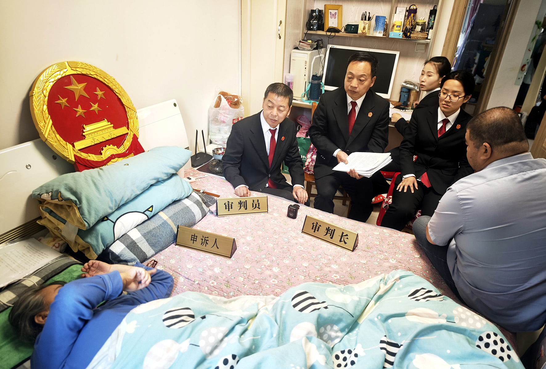 鄭某某因故意毀壞財物罪被判處刑罰,但鄭某不服向四平市中級人民法院提出刑事申訴。鄭某某天生患有小兒麻痹癥,不久前又因意外造成腰部受傷,臥床不起。面對亟待解決的法律申訴問題,四平中院法官將法庭“搬”到了鄭某某的家中,在病床前舉行申訴聽證會。