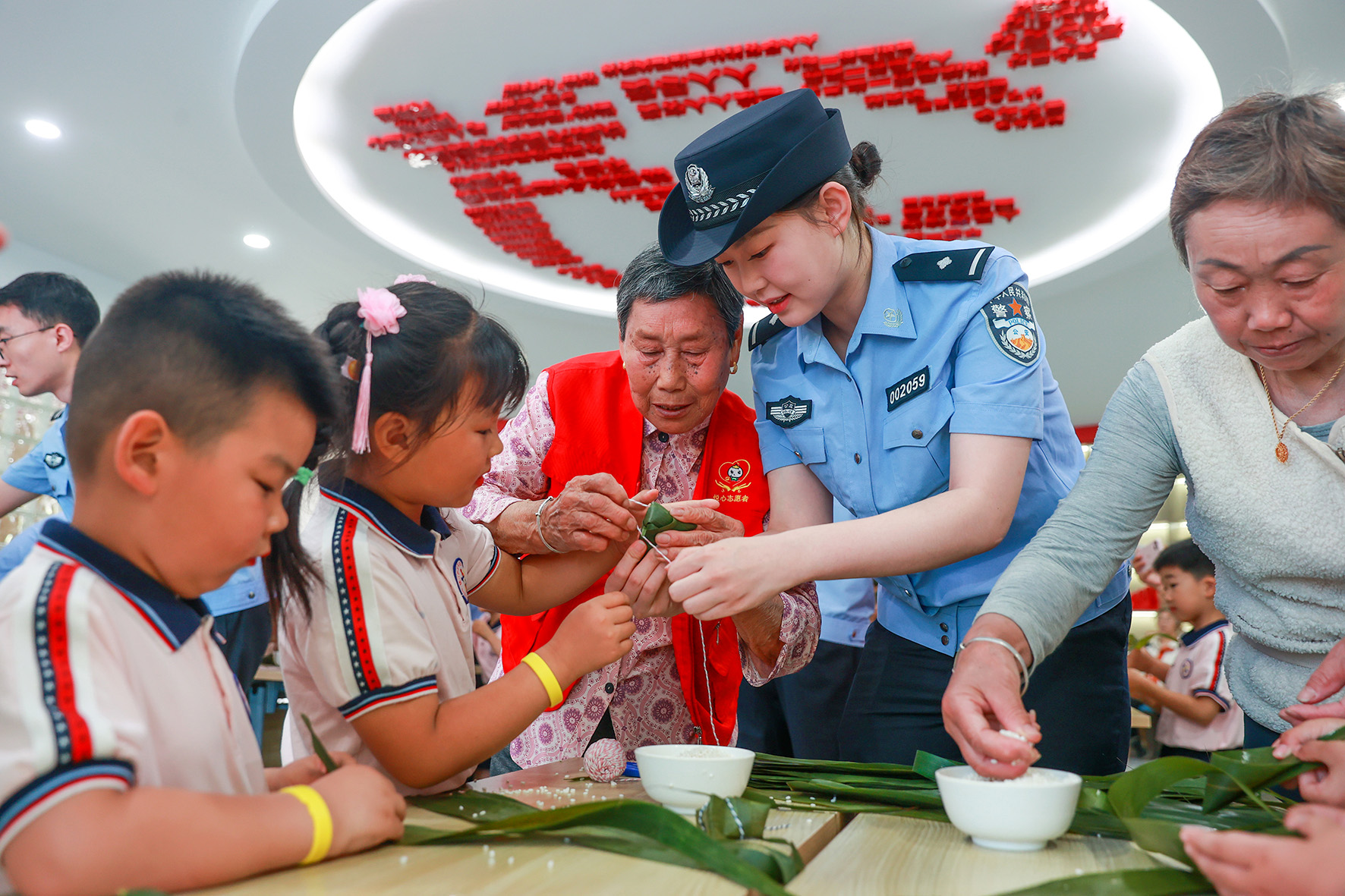 6月6日,江蘇省出入境邊防檢查站鎮(zhèn)江邊檢站與長航公安局鎮(zhèn)江分局、鎮(zhèn)江經(jīng)開區(qū)新茂社區(qū)、平昌幼兒園等單位,共同開展“警民‘粽’動員 濃情伴端午”警民共建活動。