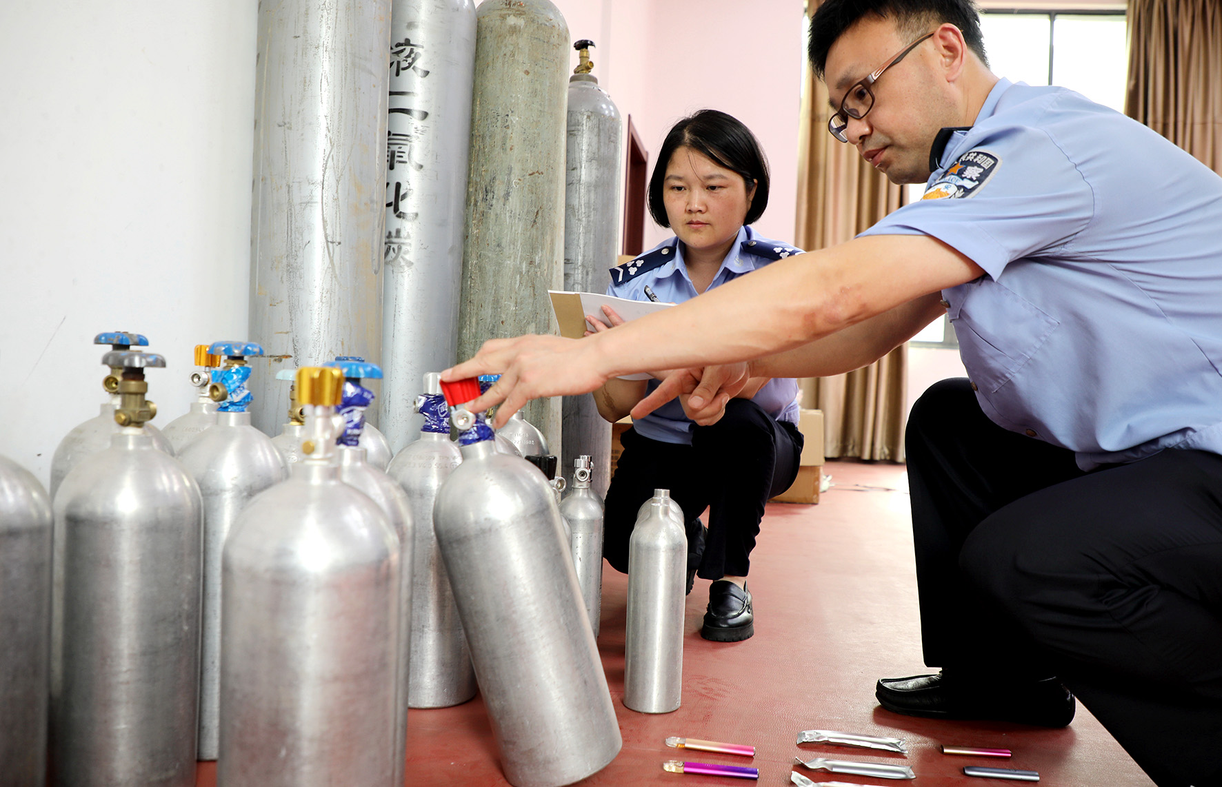 6月11日,江西省九江市公安局八里湖分局破獲一起非法經(jīng)營(yíng)“笑氣”案,抓獲3名嫌疑人,打掉一個(gè)加工窩點(diǎn),當(dāng)場(chǎng)查獲 “笑氣”200余罐。