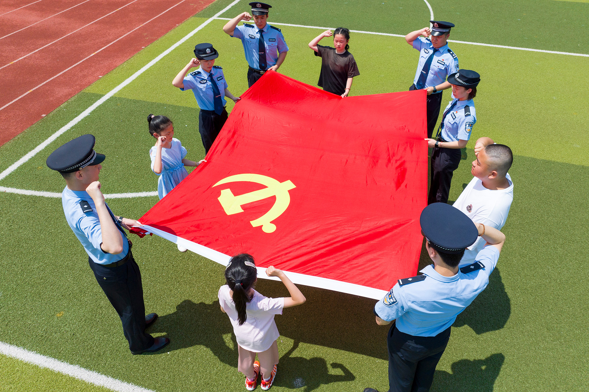 7月1日,上海市公安局崇明分局城橋派出所組織青年黨員民警來到轄區(qū)學(xué)校,與青少年學(xué)生代表共同開展“童心向黨 愛國傳承”主題黨日活動。