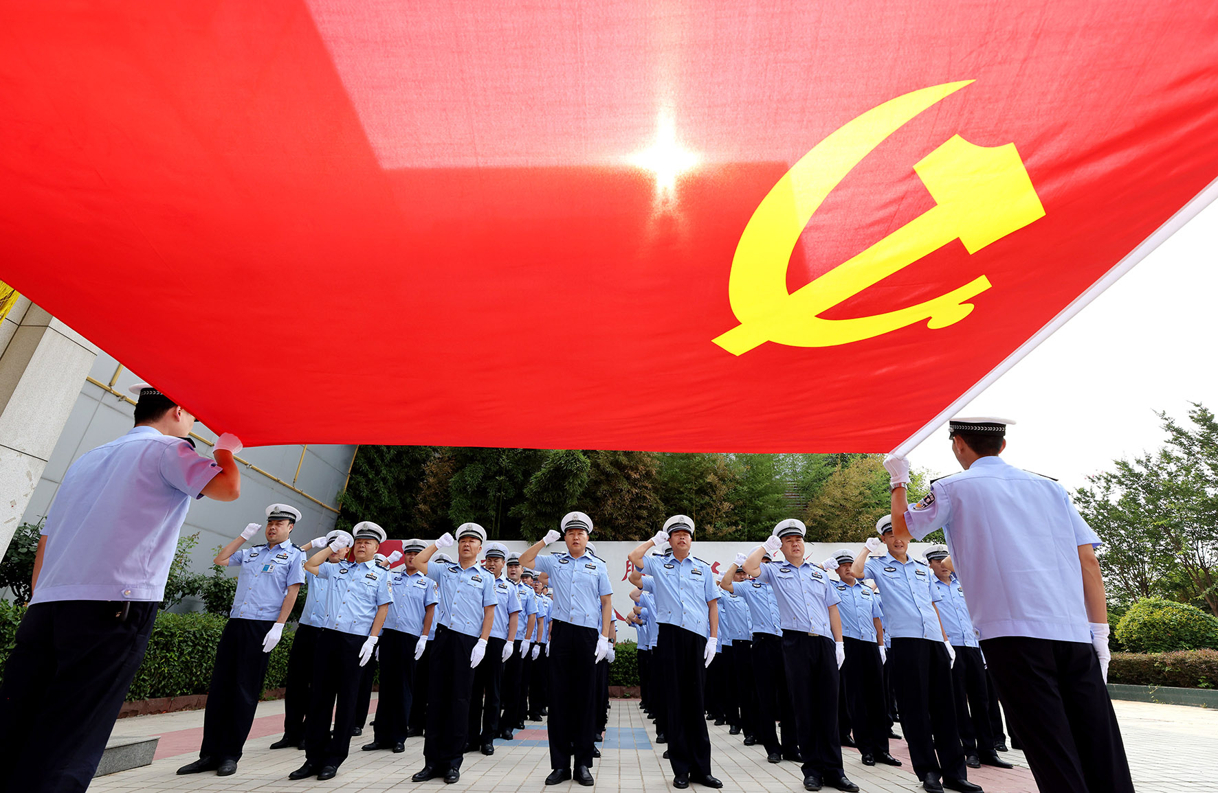 7月1日,四川省綿陽市公安局舉行迎“七一”主題活動,組織開展升旗儀式、重溫入黨誓詞、集中授獎、給老同志頒發(fā)“光榮在黨50年”紀念章等活動,引導(dǎo)廣大黨員干部堅定理想信念、踐行初心使命。