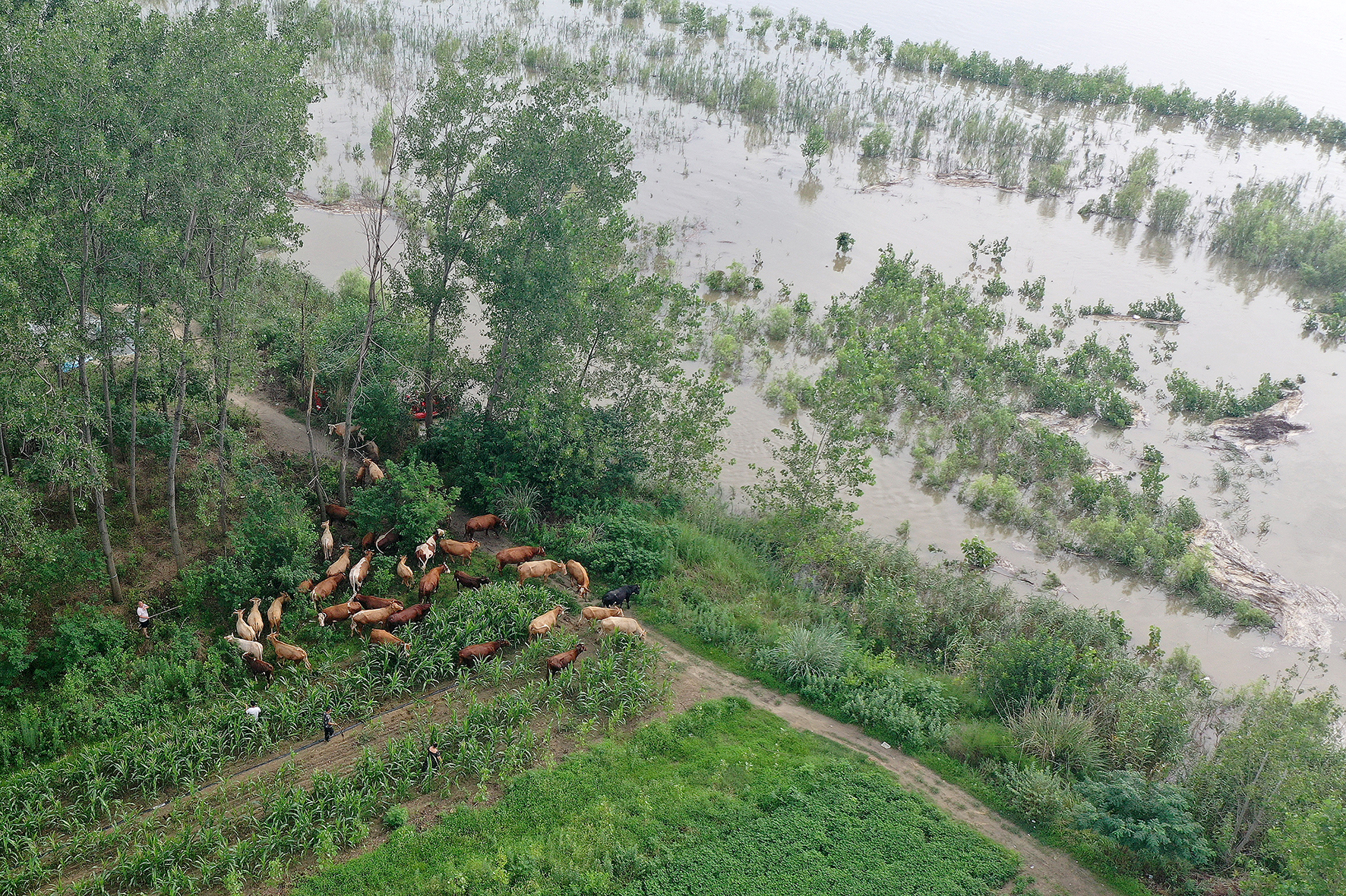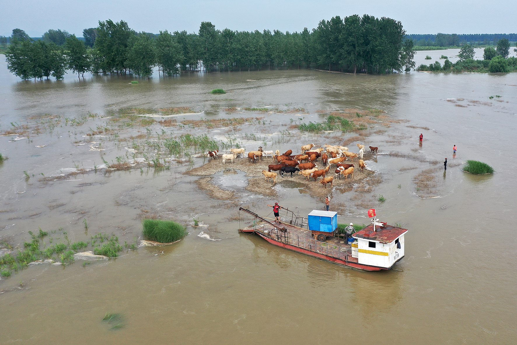 圖四:救援人員涉水引導(dǎo)被困牛群。