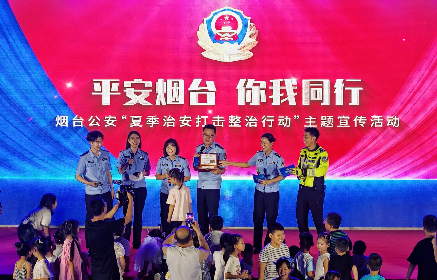 8月2日晚,山東省煙臺市公安局在市民廣場舉辦“平安煙臺 你我同行”煙臺公安“夏季治安打擊整治行動” 主題宣傳活動,民警通過現(xiàn)場宣講、防范劇場、游戲互動等多種形式,向群眾宣傳道路交通、防非法集資、禁毒、反電詐等知識,進(jìn)一步提升群眾的安全防范意識。