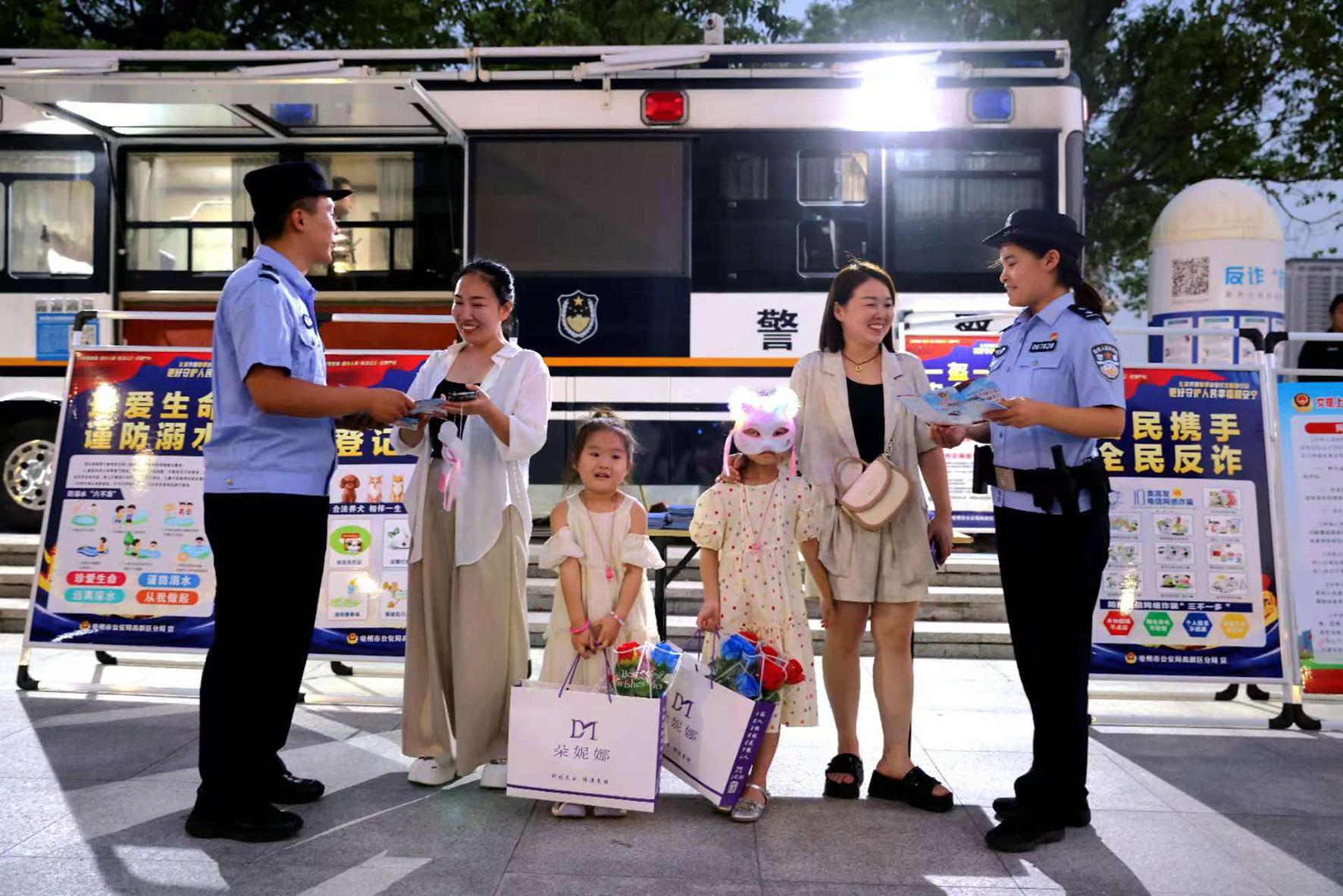 8月11日晚,安徽省當(dāng)涂縣公安局平安小分隊(duì)結(jié)合夏夜治安巡查宣防統(tǒng)一行動(dòng),深入社區(qū)、公園、夜市、廣場(chǎng)和群眾納涼場(chǎng)所等,以群眾“看得見、容易懂、記得住”的方式,開展防養(yǎng)老詐騙、防溺水、反傳銷、禁毒等安全知識(shí)宣傳。
