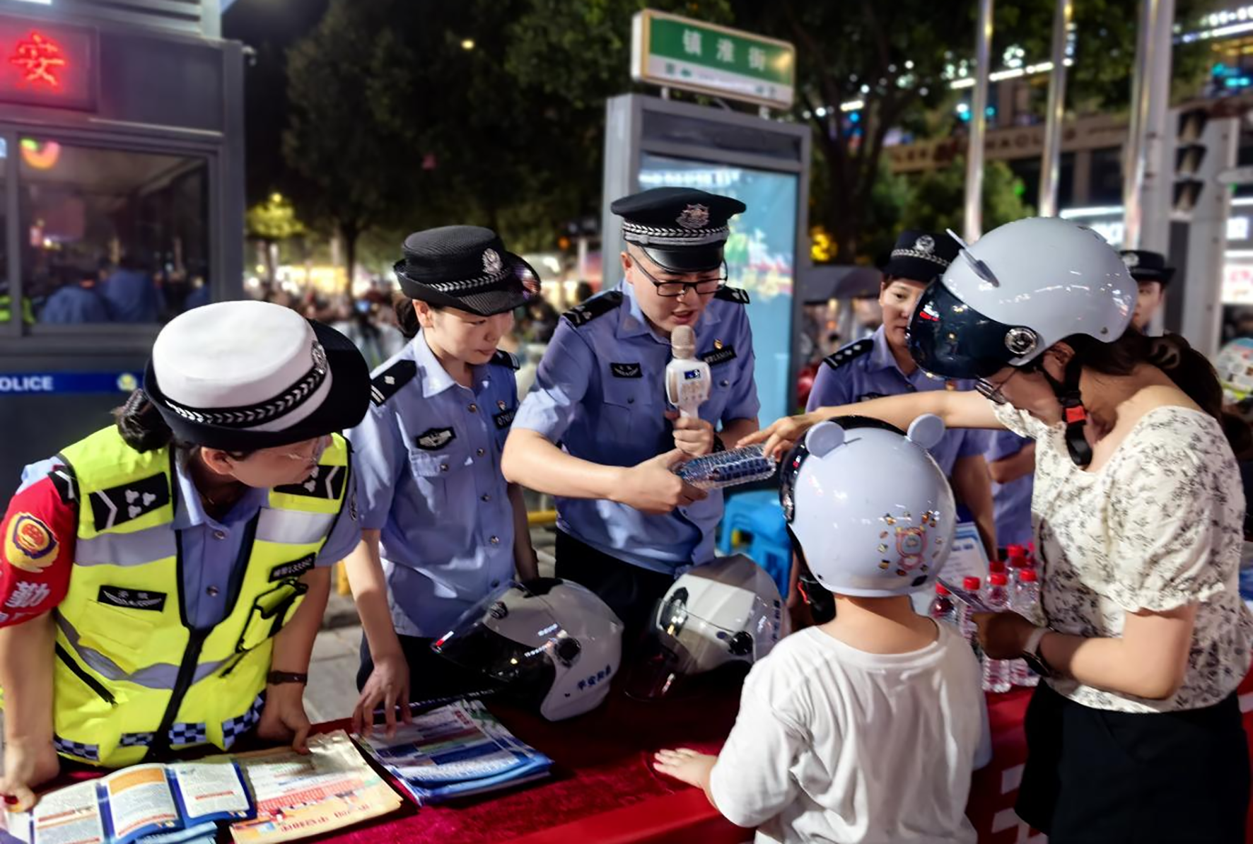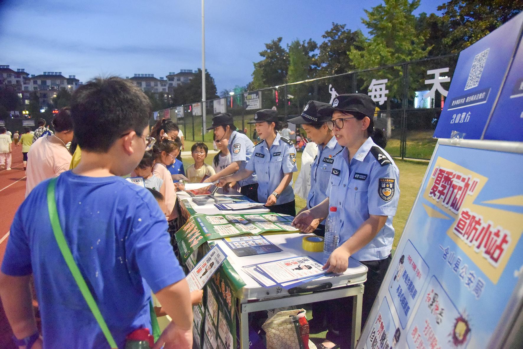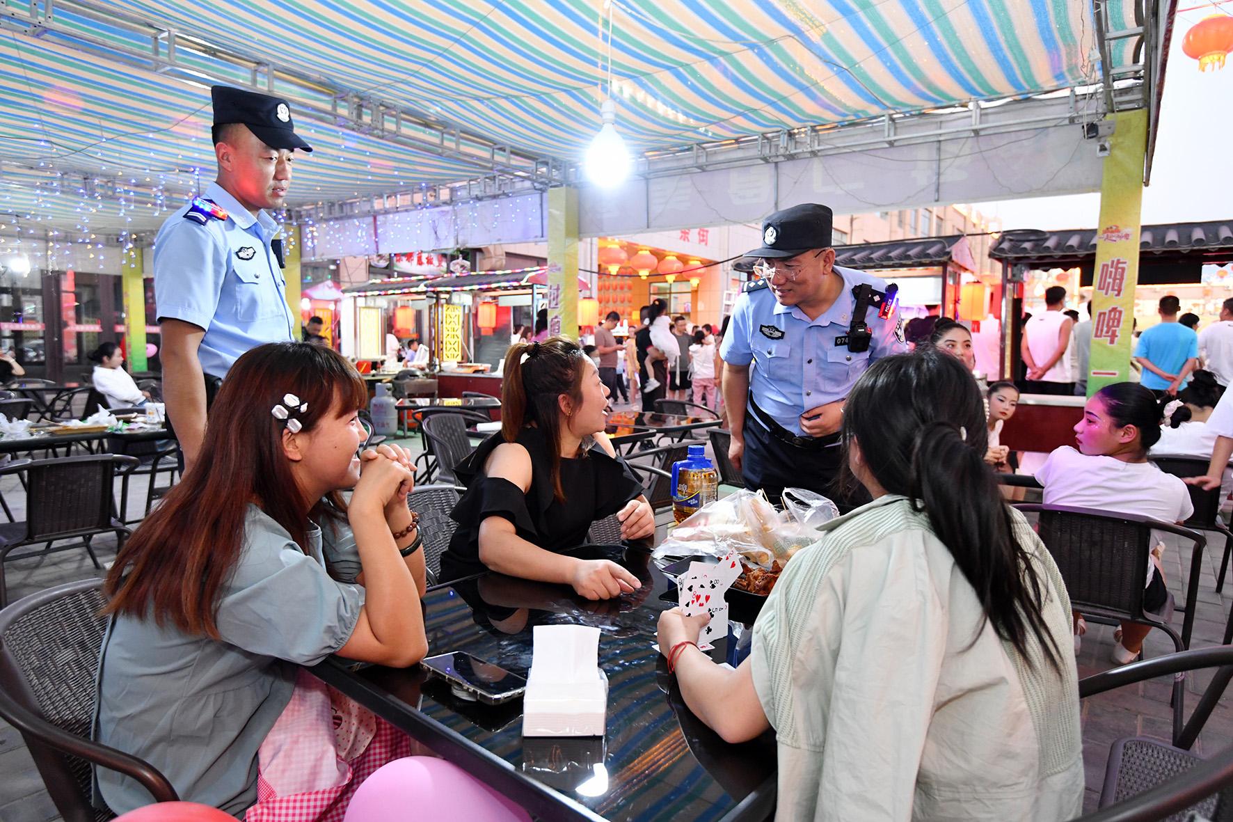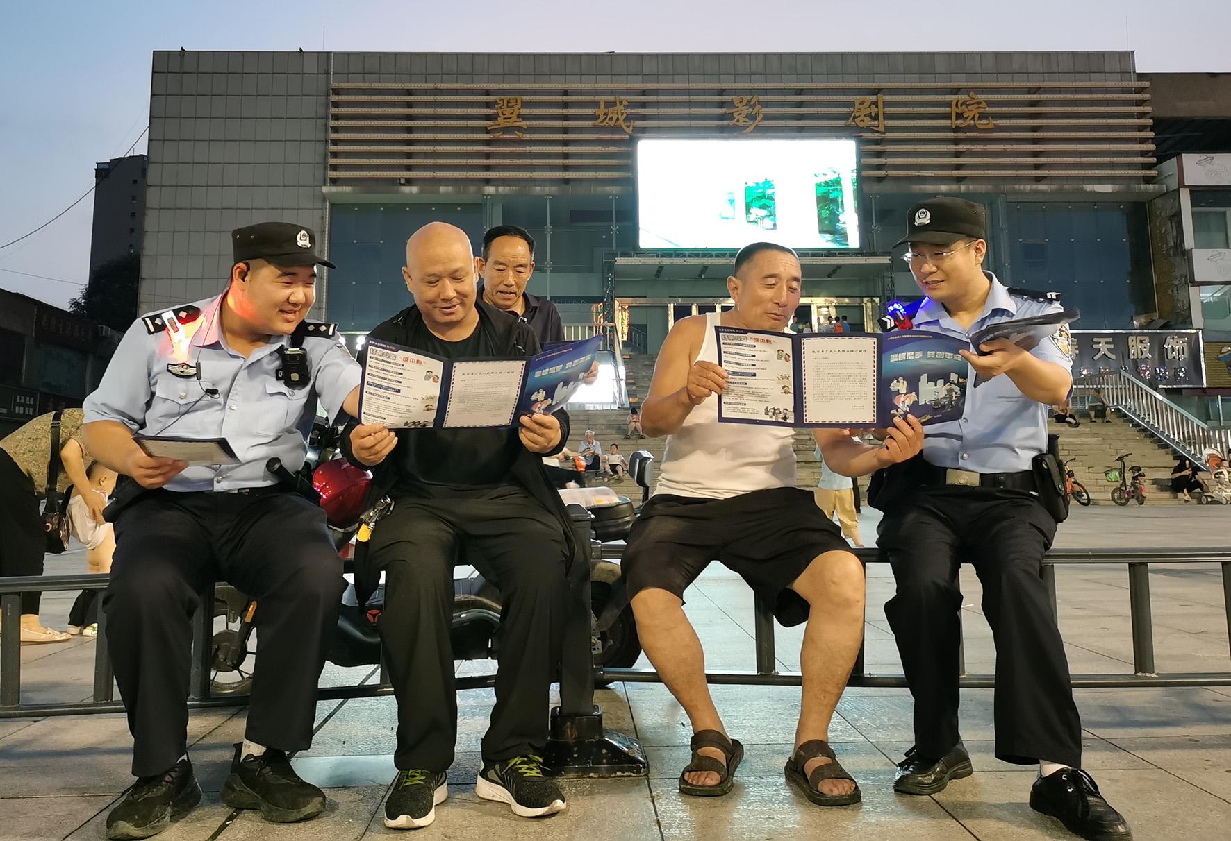 8月10日晚,河南省??h公安局結(jié)合夏夜治安巡查宣防集中統(tǒng)一行動(dòng),加大對(duì)轄區(qū)商圈、夜市、廣場(chǎng)等人員密集場(chǎng)所的檢查巡邏守護(hù)力度,向群眾宣傳反詐、禁毒、拒賭、防火防盜等安全防范知識(shí)。
