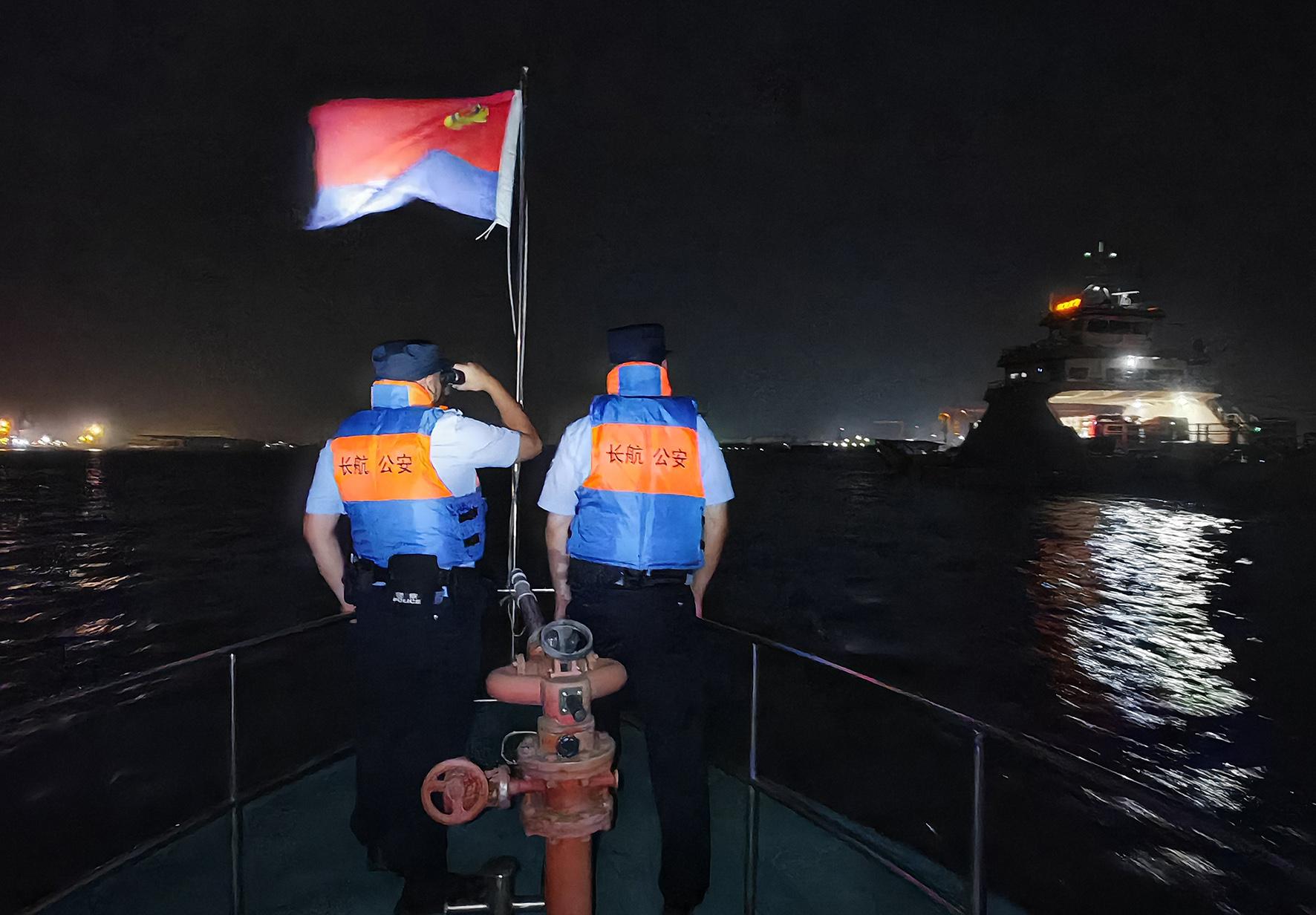 8月10日晚,在夏夜巡查宣防第二次集中統(tǒng)一行動(dòng)期間,長江航運(yùn)公安局鎮(zhèn)江分局聯(lián)合海關(guān)緝私分局組織警力在轄區(qū)水域、碼頭前沿作業(yè)區(qū)開展護(hù)航巡邏,全力護(hù)航夜間水運(yùn)物流人、船安全,以服務(wù)促管理,全力筑牢水上安全防線。