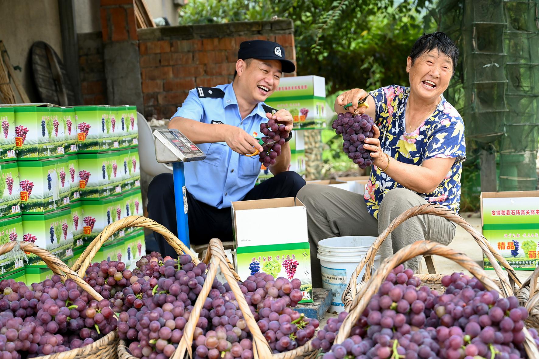 8月21日,安徽省馬鞍山市和縣公安局民警走訪種植葡萄的農戶,了解葡萄園治安狀況。同時,向農戶普及預防網絡詐騙、合同欺詐等法律知識,提升群眾法治意識。