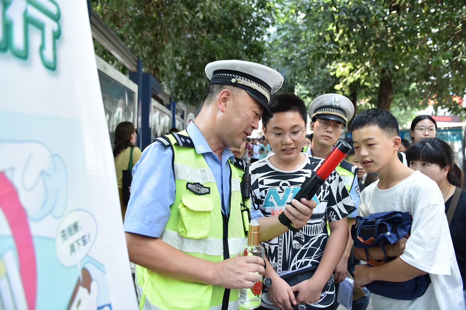 8月21日,四川省綿陽市公安局交警支隊(duì)直屬一大隊(duì)利用轄區(qū)學(xué)校開放日活動(dòng),在校園內(nèi)“擺攤”,對(duì)準(zhǔn)初一學(xué)生及家長進(jìn)行交通安全知識(shí)宣講。