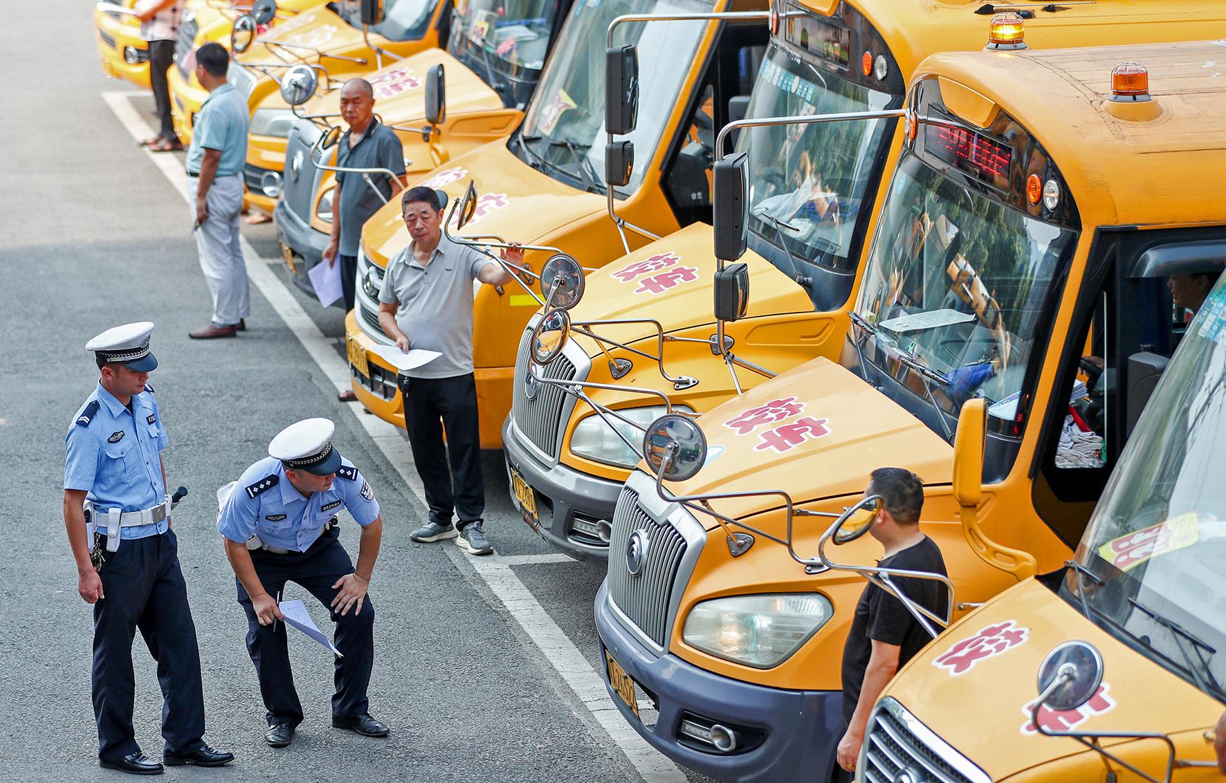 8月28日,四川省華鎣市公安局交通警察大隊(duì)組織民警對(duì)轄區(qū)內(nèi)接送學(xué)生的近50輛校車(chē),集中開(kāi)展安全性能和隨車(chē)配備的安全應(yīng)急器材設(shè)備等檢查,及時(shí)排除安全隱患,確保學(xué)生乘車(chē)平安。
