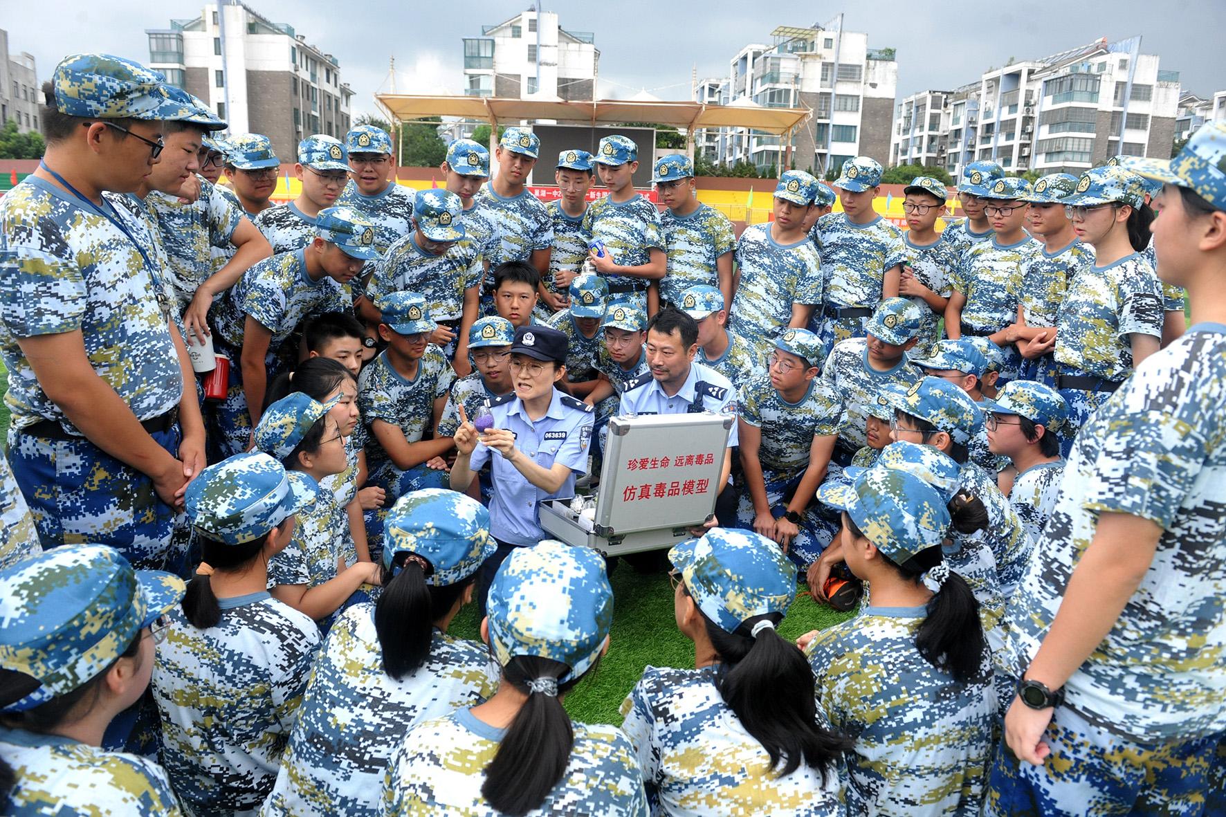 8月27日,安徽省巢湖市公安局禁毒大隊(duì)宣傳民警走進(jìn)巢湖一中,向參加軍訓(xùn)的高一新生介紹毒品的種類(lèi)、特征以及吸毒的危害,提高他們的識(shí)毒、防毒、拒毒意識(shí)。