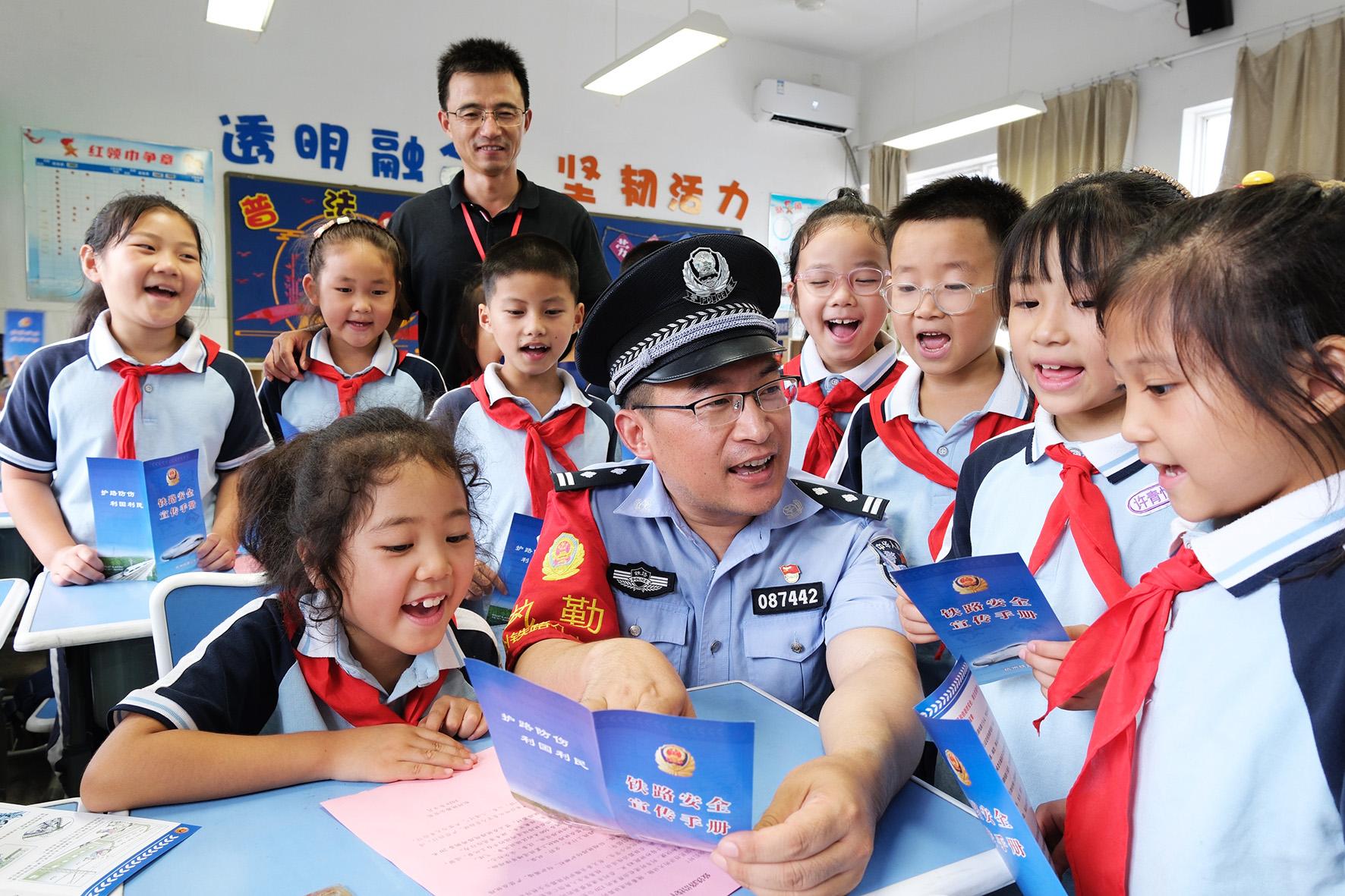 9月2日,貴州省黔東南苗族侗族自治州丹寨縣公安局交警大隊(duì)組織宣傳民警走進(jìn)轄區(qū)中小學(xué)校園,向廣大師生宣傳普及道路交通安全知識(shí)。