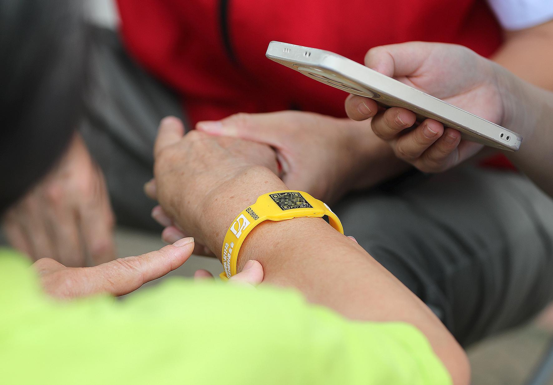 9月5日,湖北省荊門市公安局高新區(qū)·掇刀區(qū)分局白廟派出所民警在白廟街道長源熱電社區(qū),為一位老人成功申領(lǐng)“黃手環(huán)”。