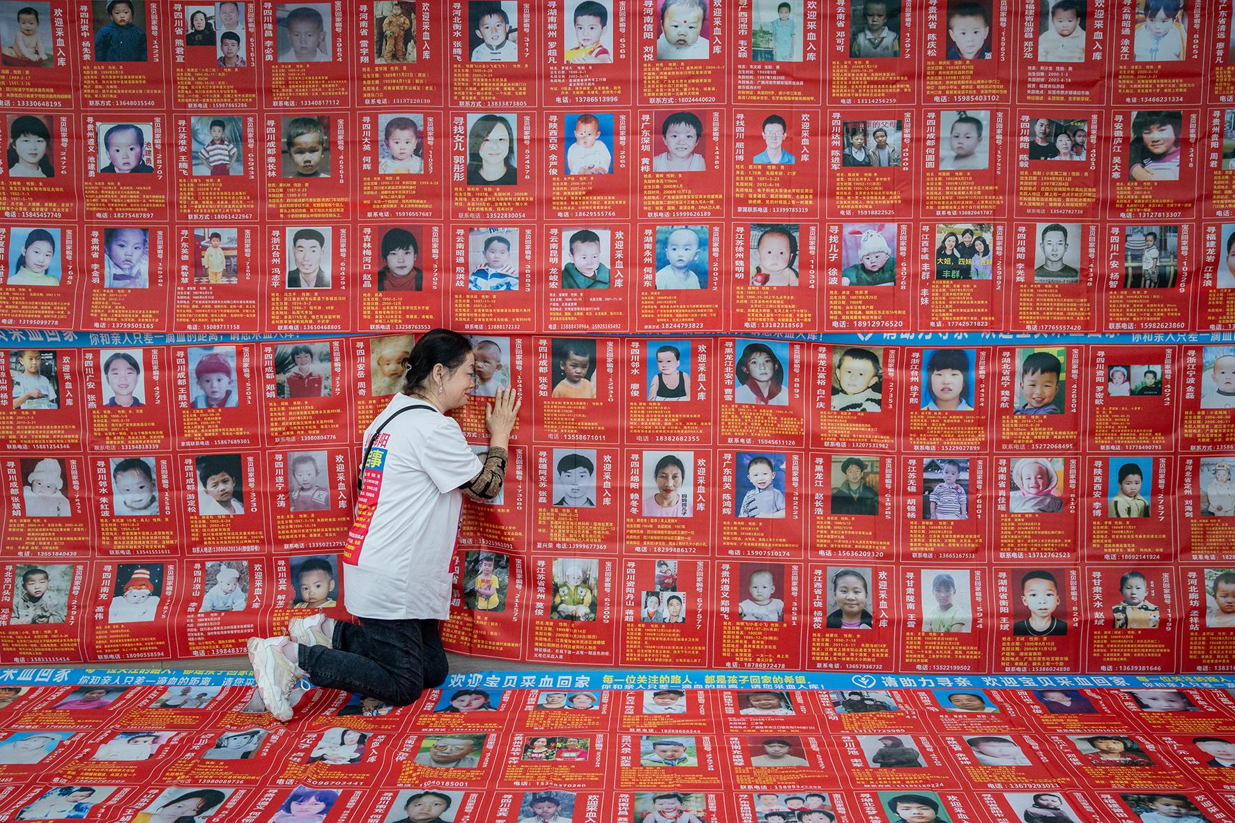 10月8日,四川省綿陽市公安局舉行失蹤被拐兒童認(rèn)親活動,現(xiàn)場一位母親輕輕撫摸著尋親墻上兒子的照片。