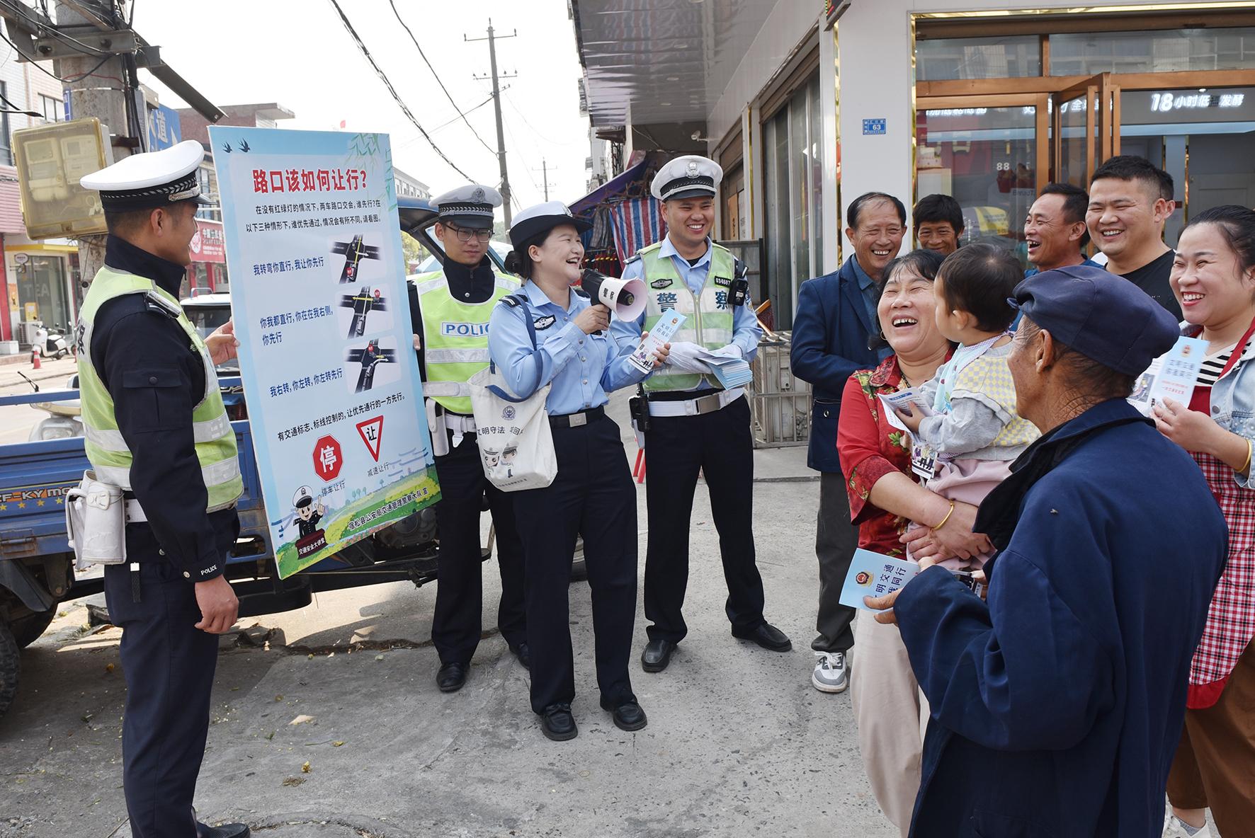 10月10日,安徽省宿松縣公安局交警大隊(duì)民輔警深入G347國(guó)道沿線偏遠(yuǎn)鄉(xiāng)鎮(zhèn)村莊,就國(guó)道沿線路口讓行規(guī)則向村民們開展精準(zhǔn)宣講。