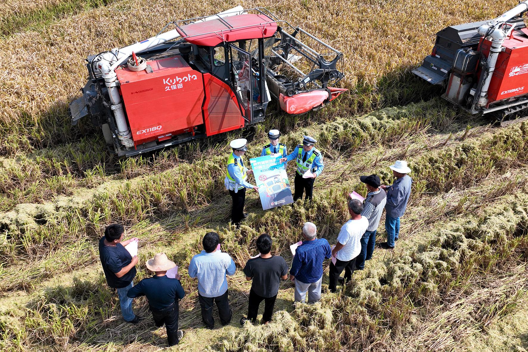10月11日,安徽省蕪湖市公安局交警支隊高速三大隊抓住農(nóng)村秋收季節(jié)特點,組織民警深入高速公路沿邊田間地頭開展交通安全宣傳,提高群眾交通安全意識。