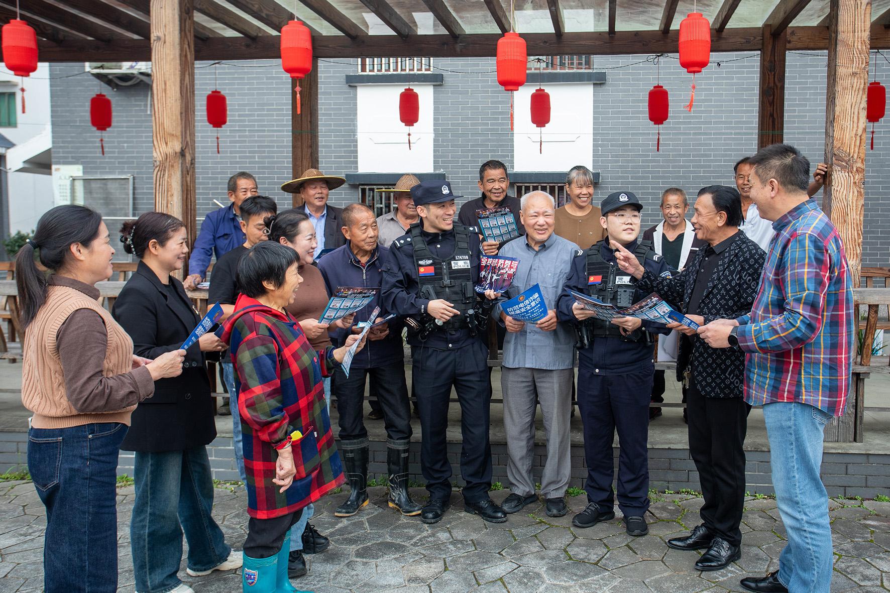 11月4日,浙江省臺(tái)州市公安局黃巖分局寧溪派出所民警和“鄉(xiāng)村宣傳大使”把防范電信網(wǎng)絡(luò)詐騙知識編成詼諧的順口溜,在寧溪鎮(zhèn)上宅居開展反詐宣傳活動(dòng)。