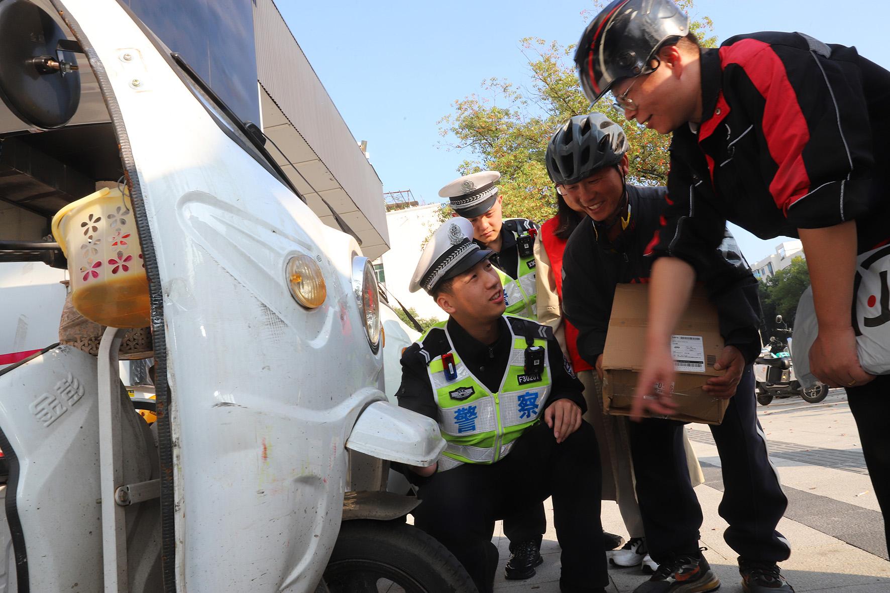 11月12日,浙江省臺州市路橋區(qū)路北街道平安辦組織黨員干部和交警一起深入各快遞網(wǎng)點,向快遞小哥宣傳平安知識,增強他們安全意識。