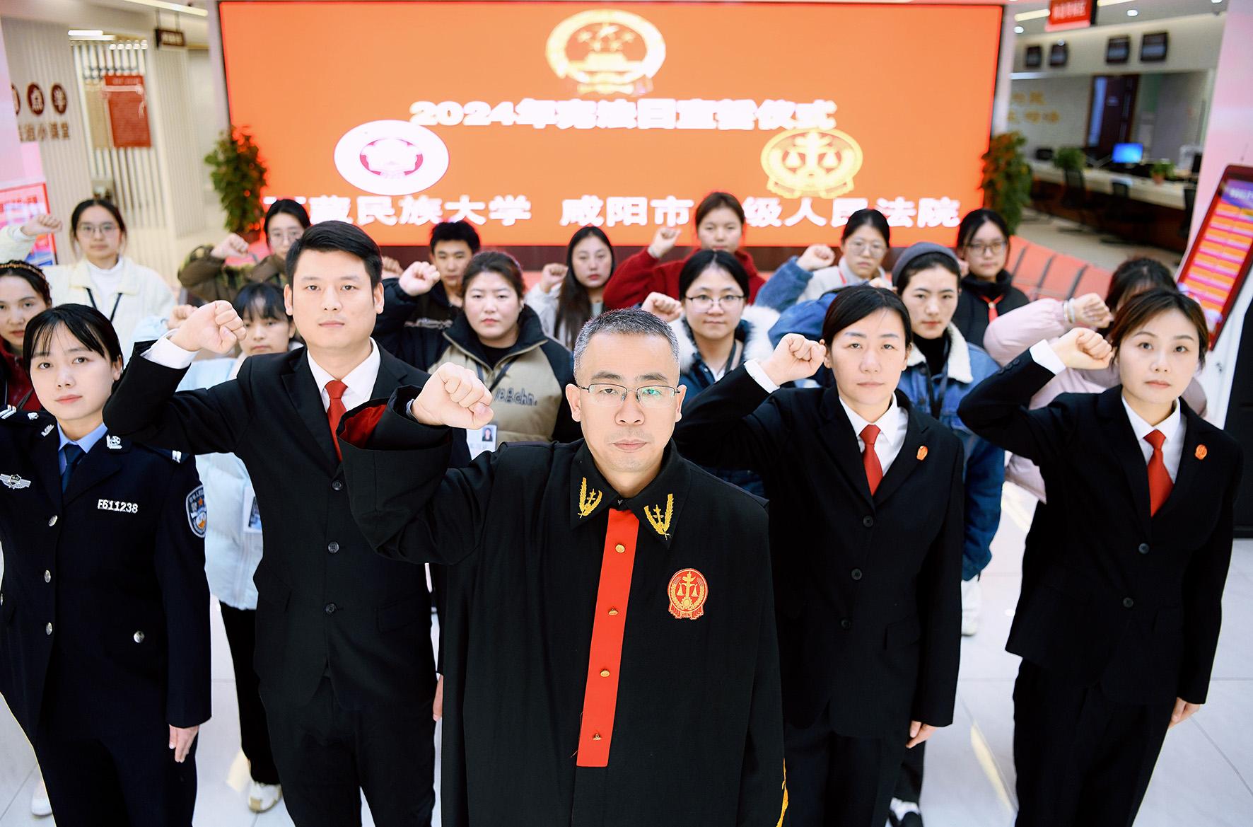 12月2日,陜西省咸陽市中級人民法院未成年人案件審判庭組織干警、實習生開展以“大力弘揚憲法精神 推動進一步全面深化改革”為主題的憲法宣傳周宣誓活動。