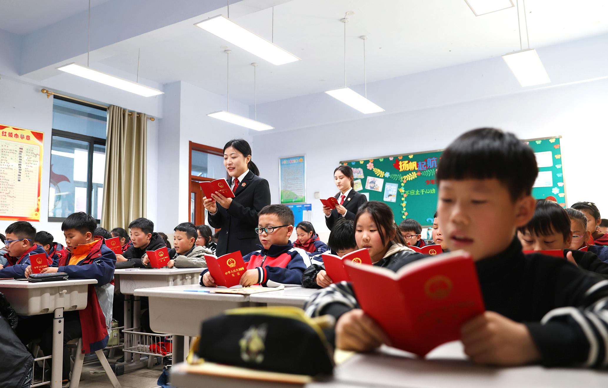 12月2日,山東省臨沭縣人民法院法官助理走進青云鎮(zhèn)中心小學,開展“法護青禾 與‘憲’同行”普法宣傳活動,普及憲法知識,弘揚憲法精神。