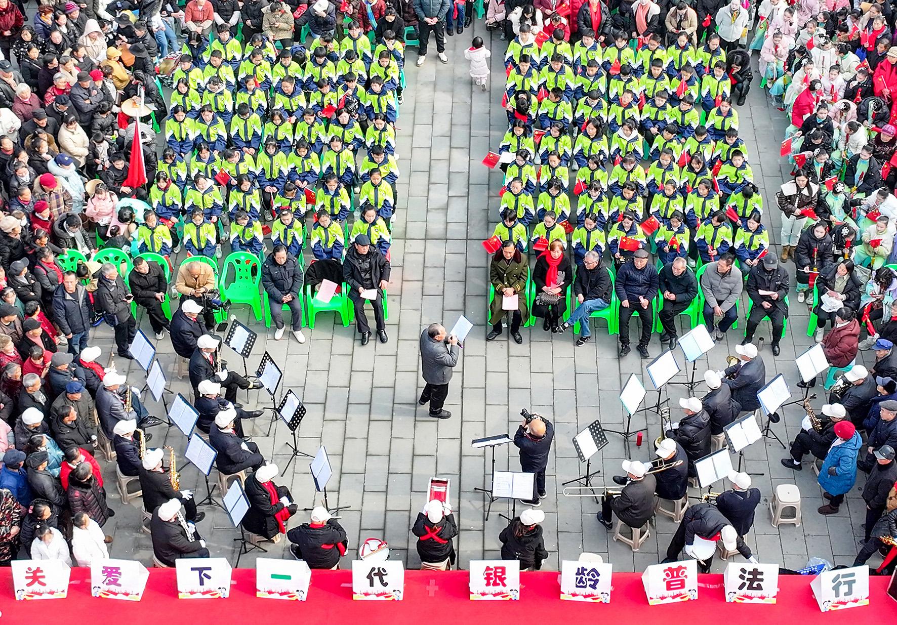 1月5日,四川省華鎣市委政法委、教科體局、關(guān)工委及老年志愿者法治宣講團在華鎣山廣場聯(lián)合舉辦“托起明天的太陽——關(guān)愛未成年人健康成長法治文藝匯演”暨“未成年人保護法”“家庭教育促進法”“學前教育法”講座系列活動。