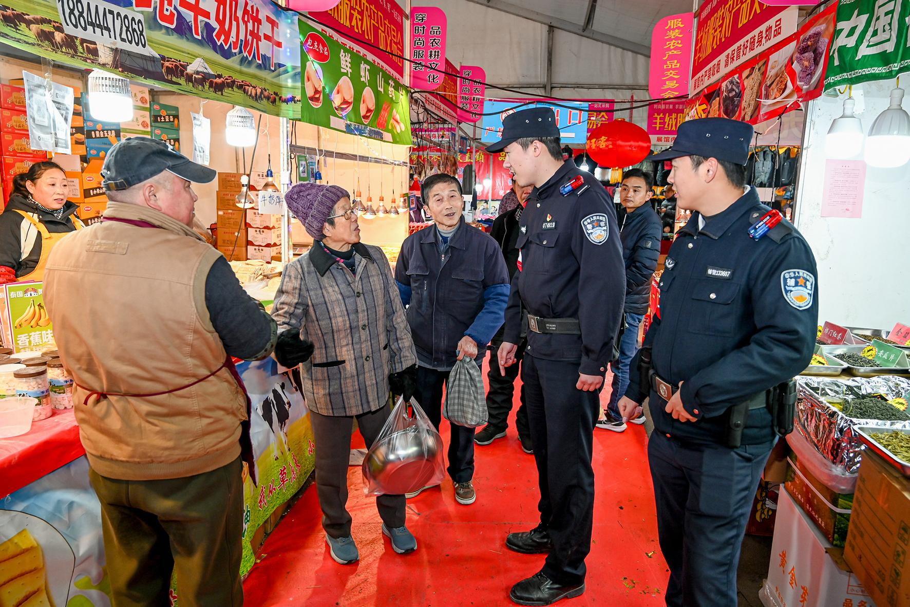 1月5日晚,安徽省馬鞍山市和縣公安局民警在新春購物節(jié)活動現(xiàn)場巡邏,保障現(xiàn)場安全有序。