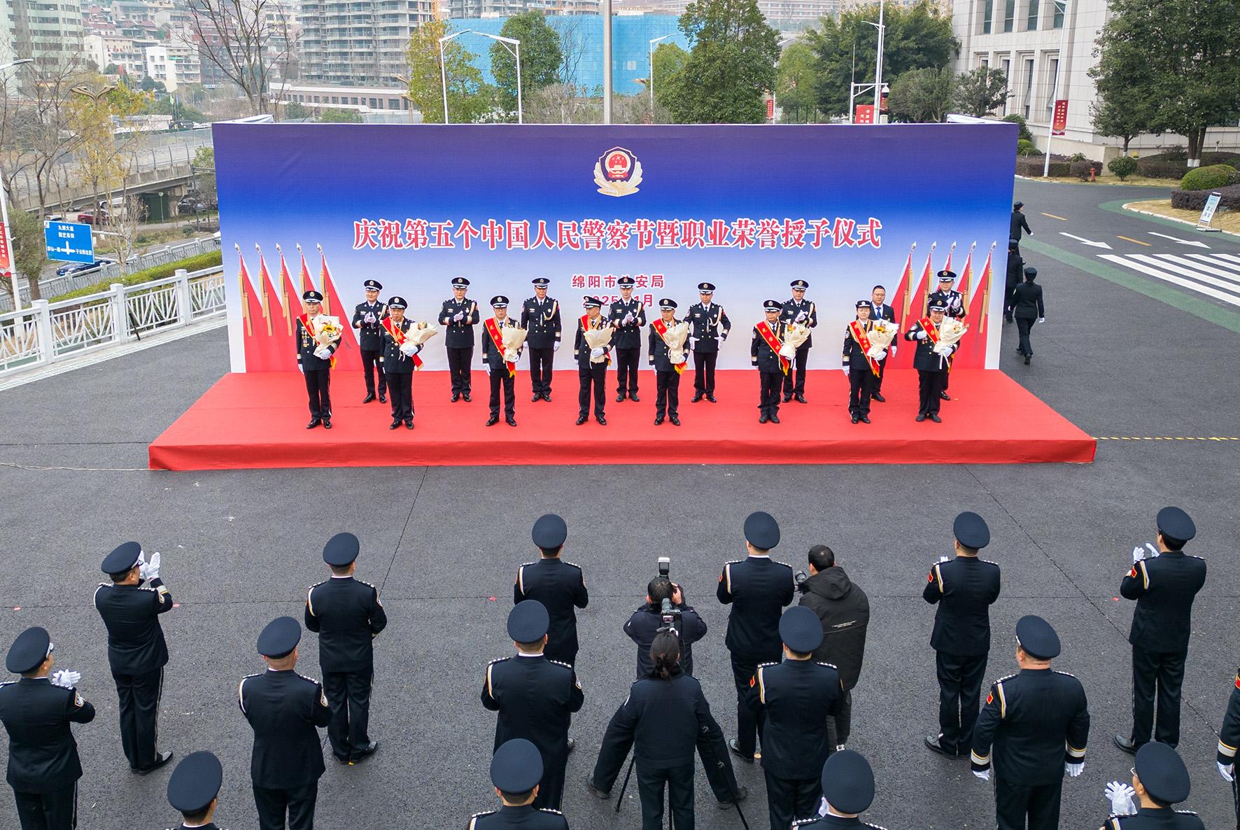 1月10日,四川省綿陽市舉行“升警旗 重溫入警誓詞”活動及榮譽授予儀式,慶祝第五個中國人民警察節(jié)。