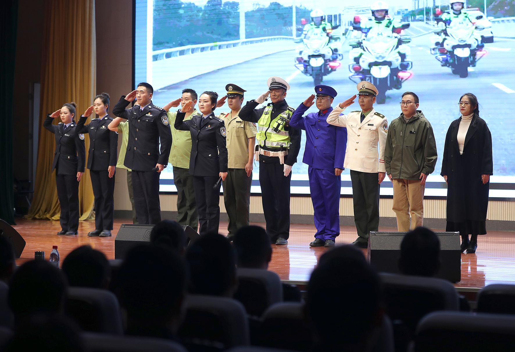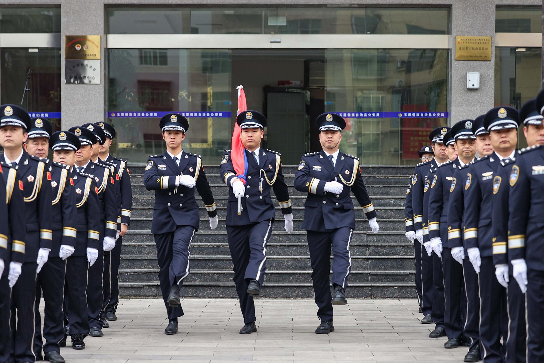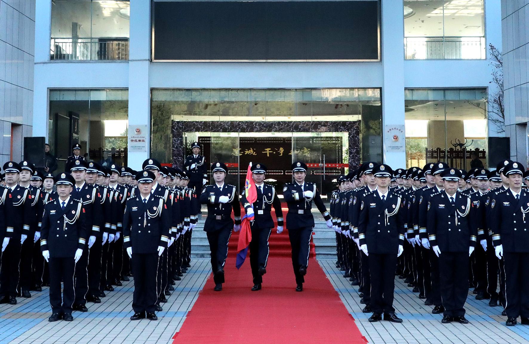 1月10日,貴州省赤水市公安局組織黨員民輔警舉行“奏警歌、升警旗暨公安機關人民警察誓詞宣誓儀式”活動,慶祝第五個中國人民警察節(jié)。