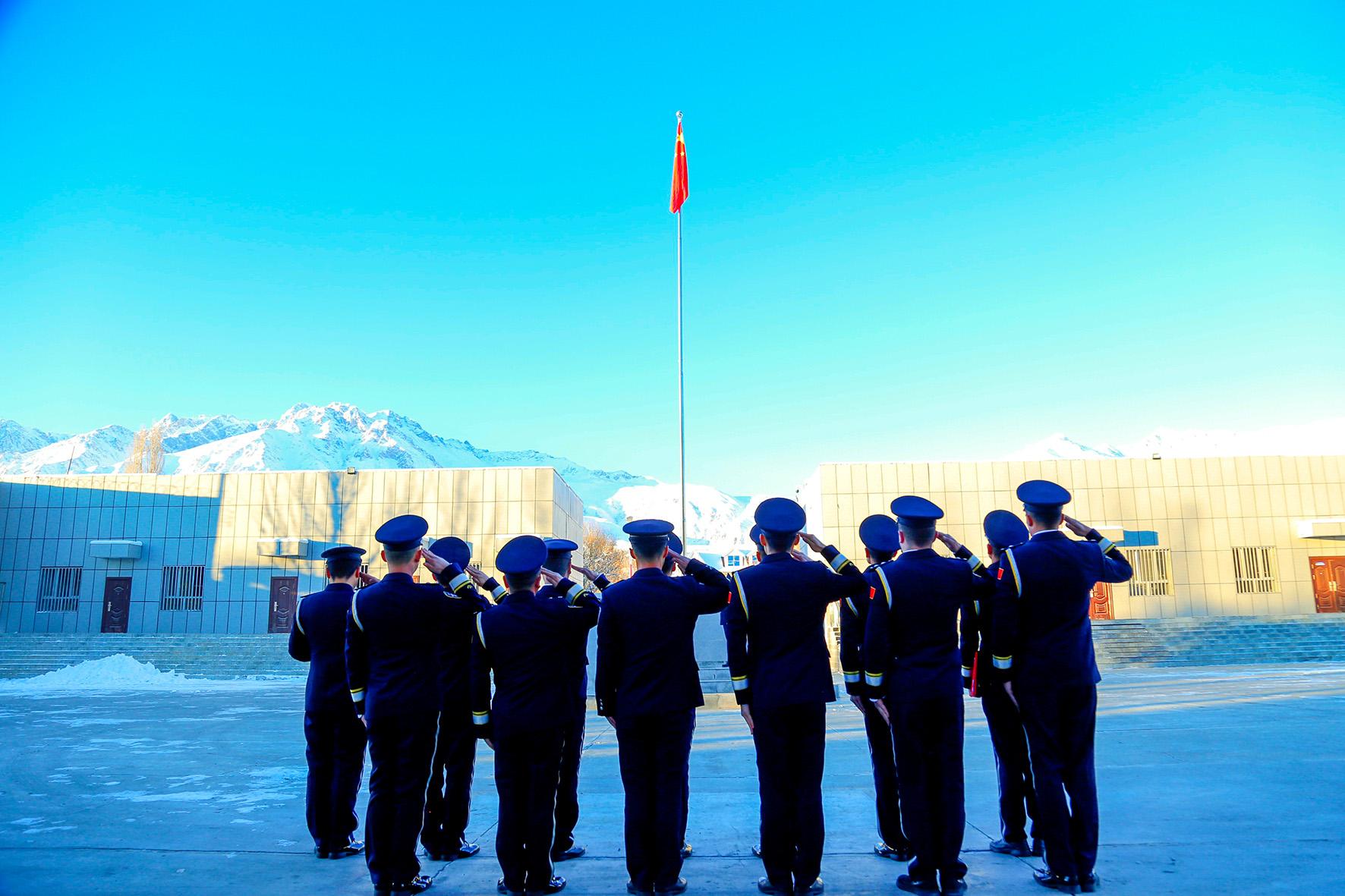 1月10日,新疆阿勒泰吉木乃邊境管理大隊舉行中國人民警察節(jié)升旗及宣誓儀式。