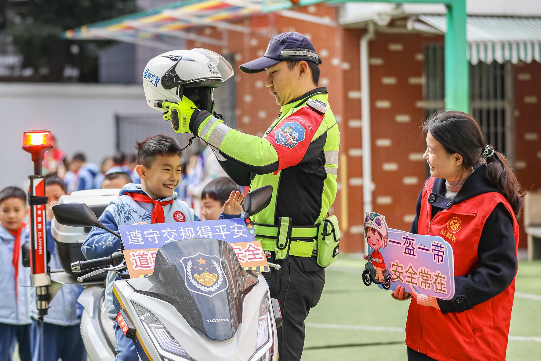 1月14日,福建省福州市公安局交警支隊(duì)鼓樓大隊(duì)民警、社區(qū)志愿者走進(jìn)斗南小學(xué),開展“交通安全進(jìn)校園 平安快樂度寒假”主題活動(dòng)。