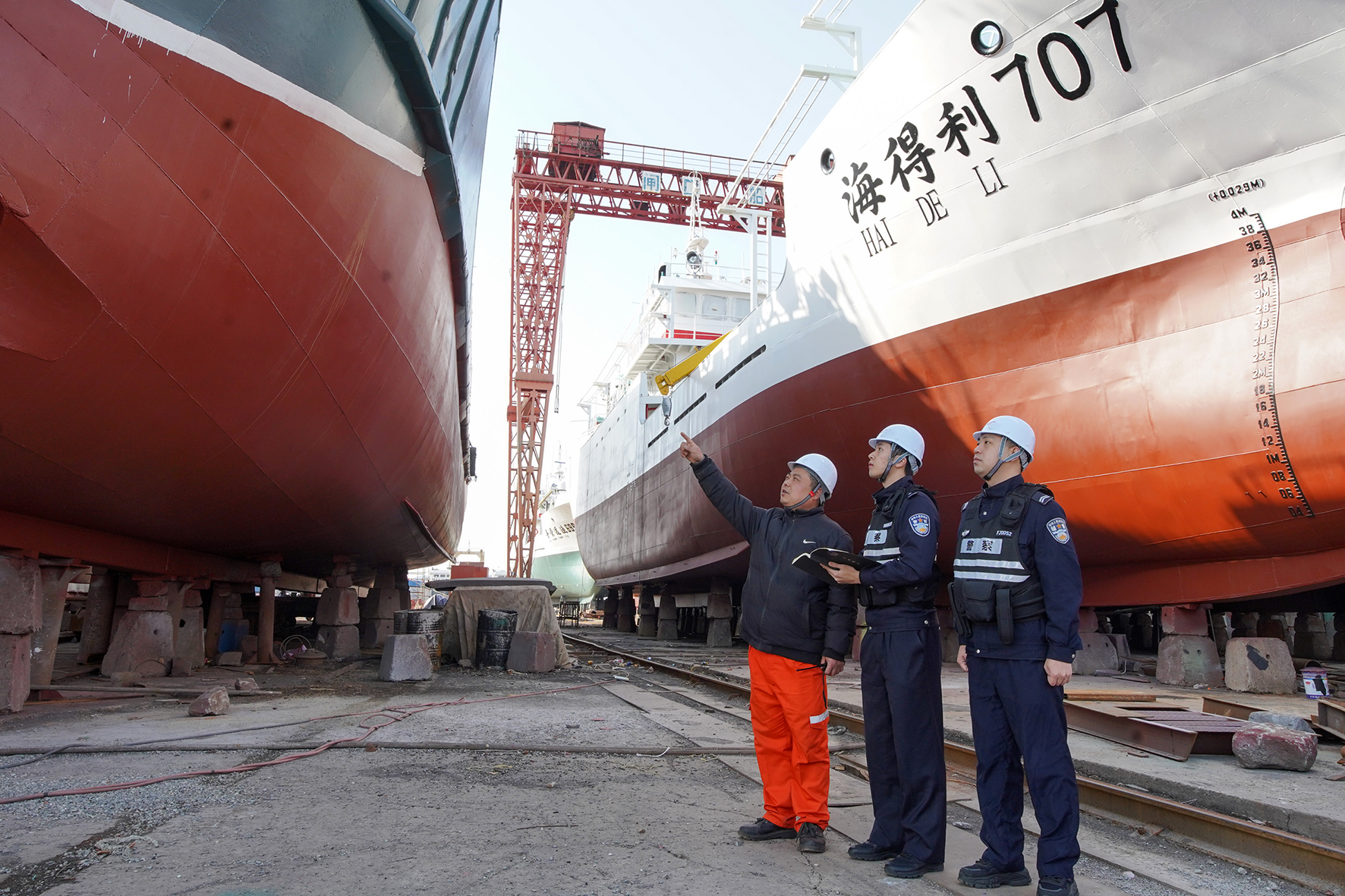 2月6日,浙江省舟山市岱山縣公安局岱東派出所組織民警輔警走進轄區(qū)船企,開展安全檢查、法治宣傳等工作,護航轄區(qū)企業(yè)節(jié)后安全復(fù)工復(fù)產(chǎn)。