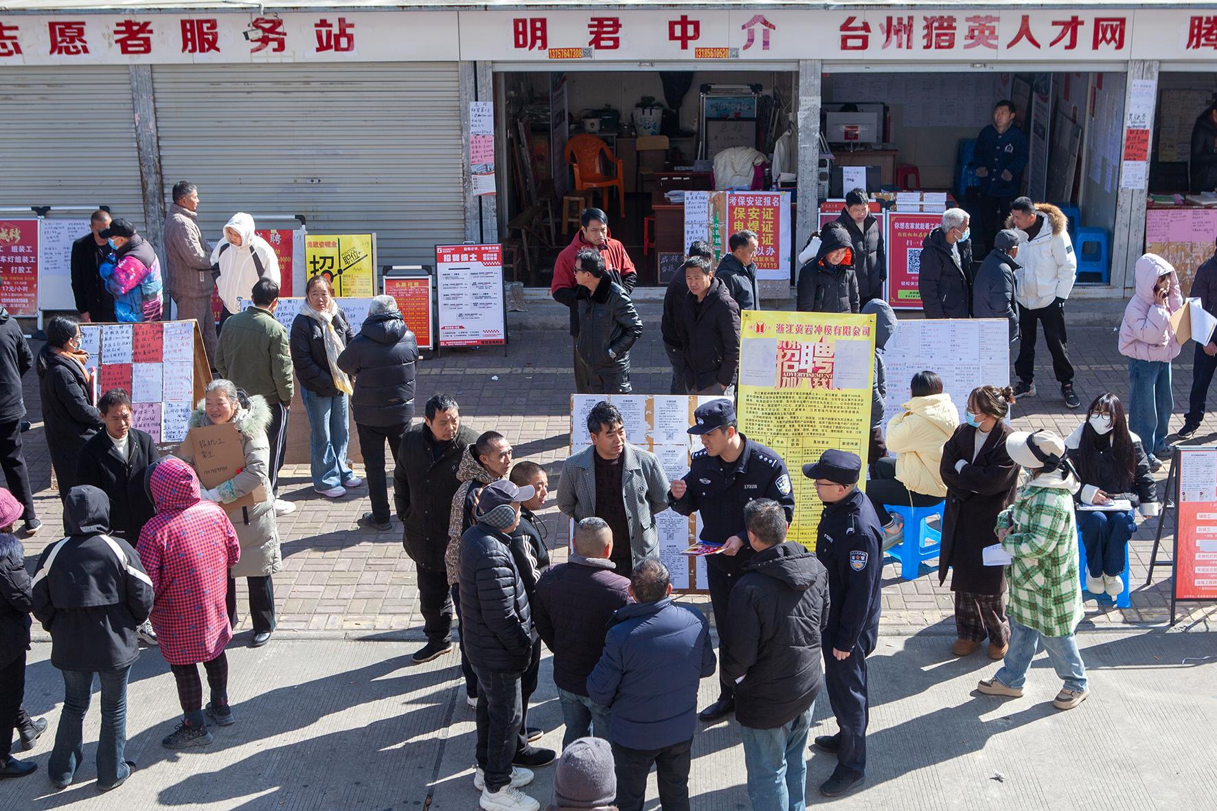2月8日上午,浙江省臺州市黃巖區(qū)在人力資源市場舉辦首場新春招聘會。臺州市公安局黃巖分局城北派出所民警在現(xiàn)場開展以反詐、禁毒為主的安全防范宣傳,提高務工人員的安全防范意識。