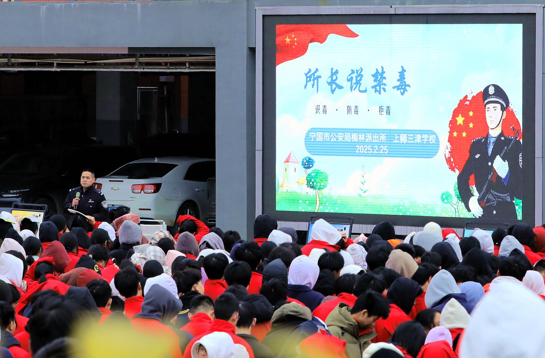 2月25日,安徽省寧國市公安局梅林派出所依托“所長(zhǎng)說禁毒”模式開展“禁毒春風(fēng)進(jìn)校園”普法宣傳,旨在提高校園學(xué)生的識(shí)別毒品的能力和禁毒防范意識(shí)。