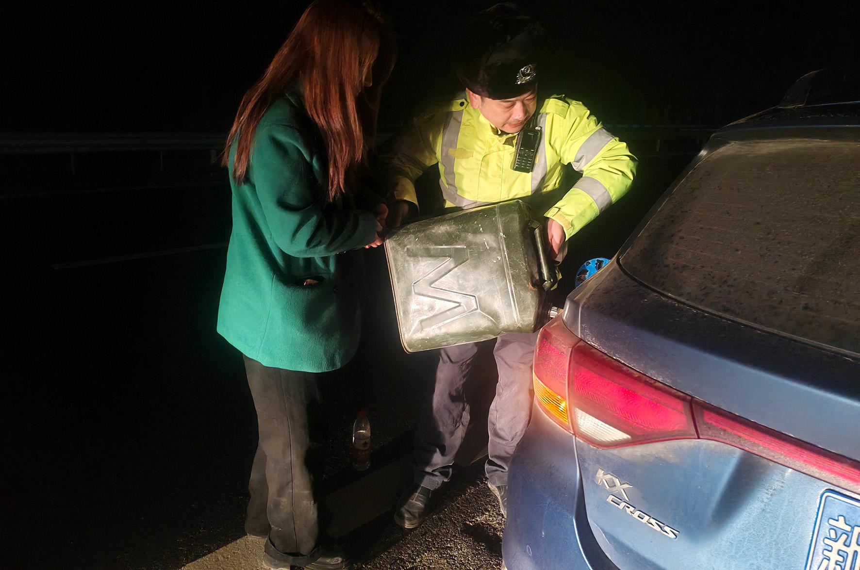 3月5日凌晨1時(shí)12分許,新疆克拉瑪依市公安局白堿灘區(qū)分局交警大隊(duì)巡邏組接到報(bào)警,在克拉瑪依市白堿灘區(qū)G3014高速157公里處,一位駕駛員因車輛沒油請(qǐng)求救援。警情就是命令,執(zhí)勤民警立即趕赴就近加油站協(xié)調(diào)購(gòu)買散裝汽油,并及時(shí)送到求助地點(diǎn)。