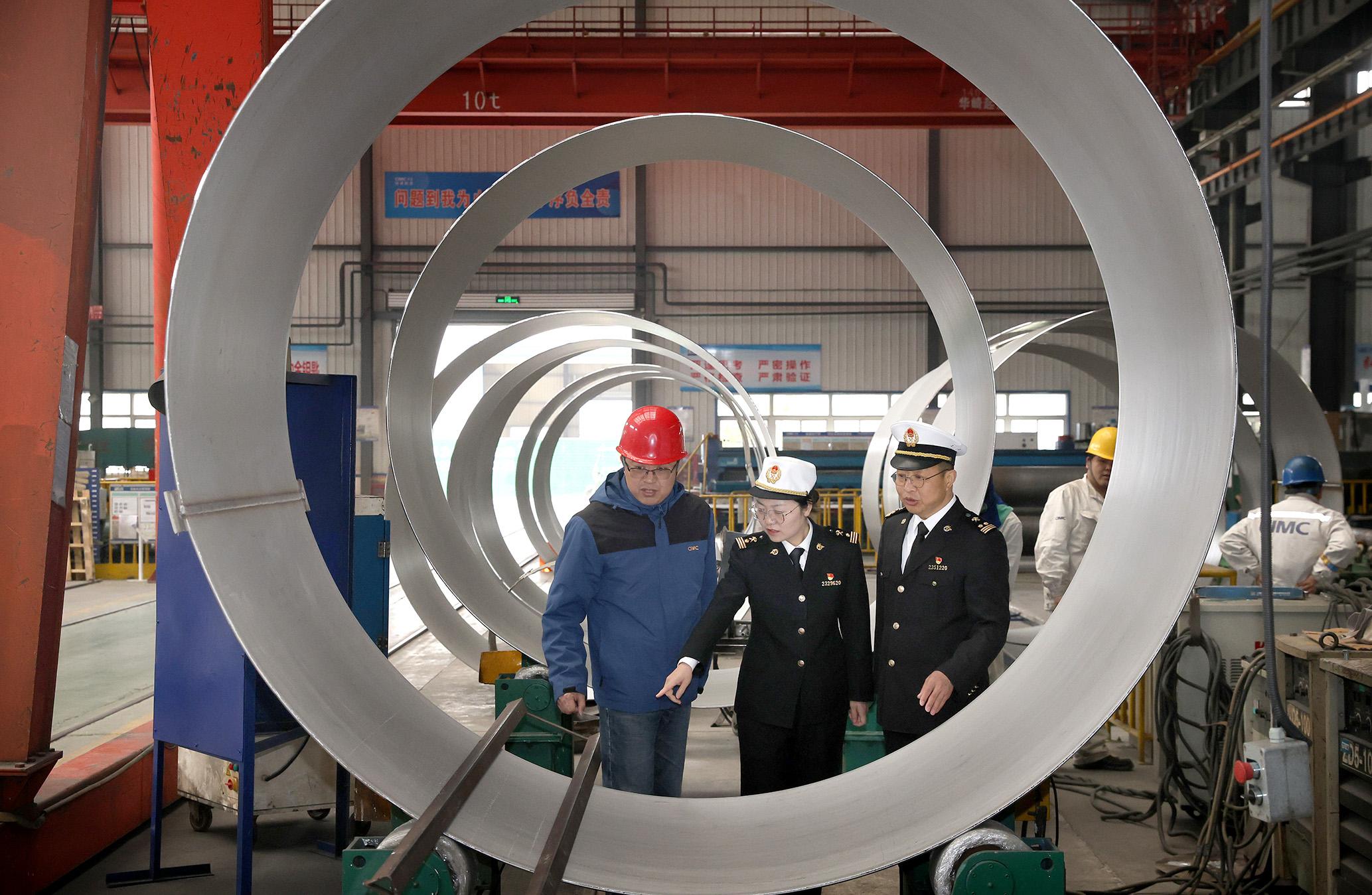 3月10日,南通海關(guān)關(guān)員在江蘇省南通市崇川區(qū)一家企業(yè)實地調(diào)研,保障出口產(chǎn)品高效出海。南通海關(guān)聚焦企業(yè)關(guān)心關(guān)注,不斷優(yōu)化服務(wù),在提升營商環(huán)境中全力展現(xiàn)“海關(guān)作為”。
