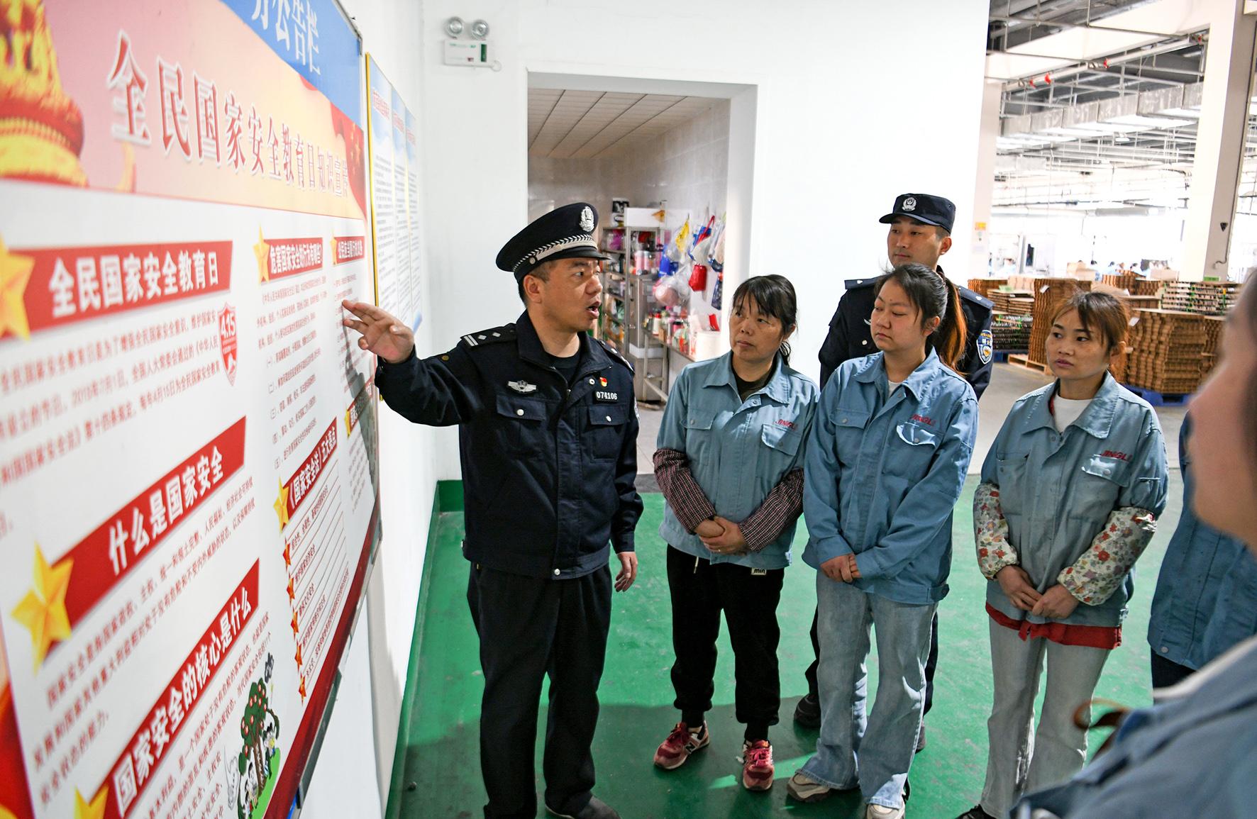 4月14日,安徽省馬鞍山市含山縣公安局民警走進(jìn)企業(yè),為企業(yè)職工講解國(guó)家安全知識(shí)。