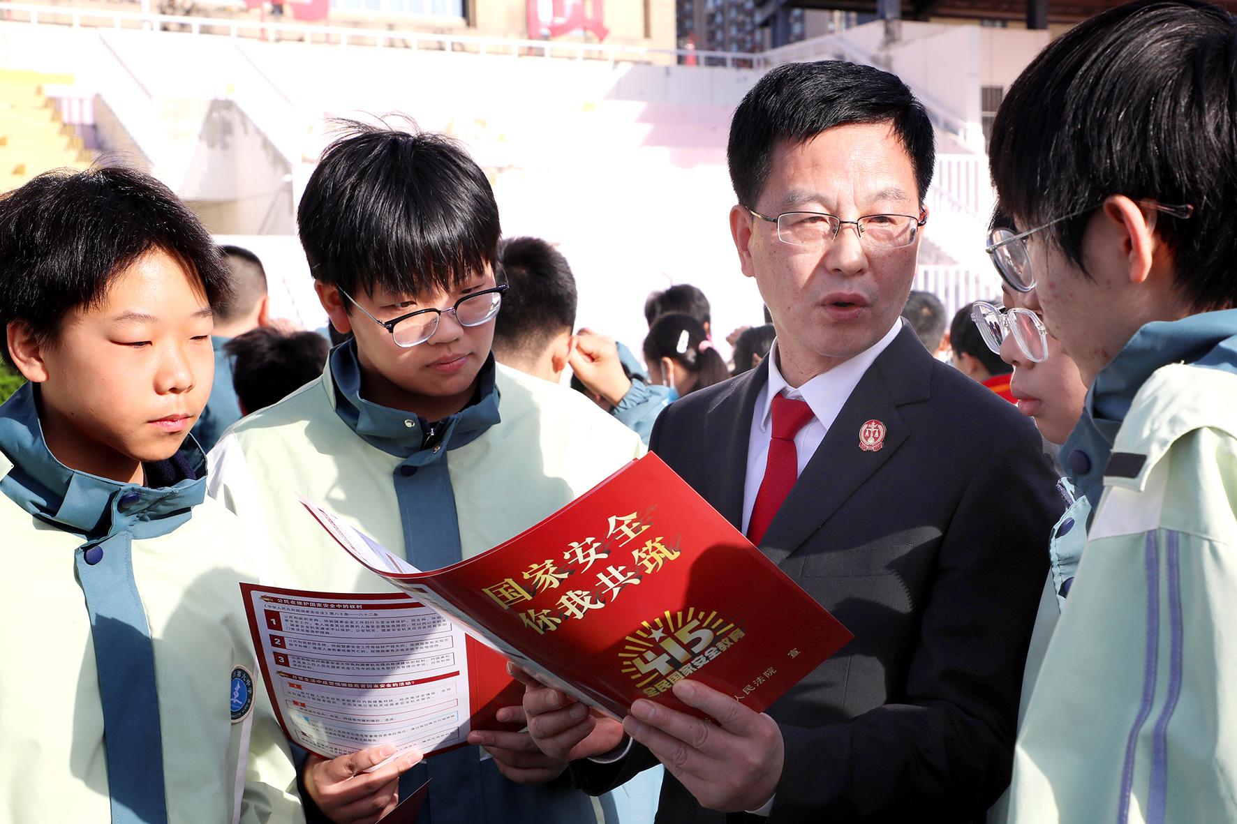 4月14日,在第十個(gè)全民國(guó)家安全教育日到來(lái)之際,山東省棗莊市市中區(qū)人民法院組織法官走進(jìn)東湖小學(xué),通過(guò)多種方式向?qū)W生普及國(guó)家安全相關(guān)法律法規(guī)知識(shí),增強(qiáng)學(xué)生們對(duì)總體國(guó)家安全觀的認(rèn)識(shí),共筑國(guó)家安全防線。