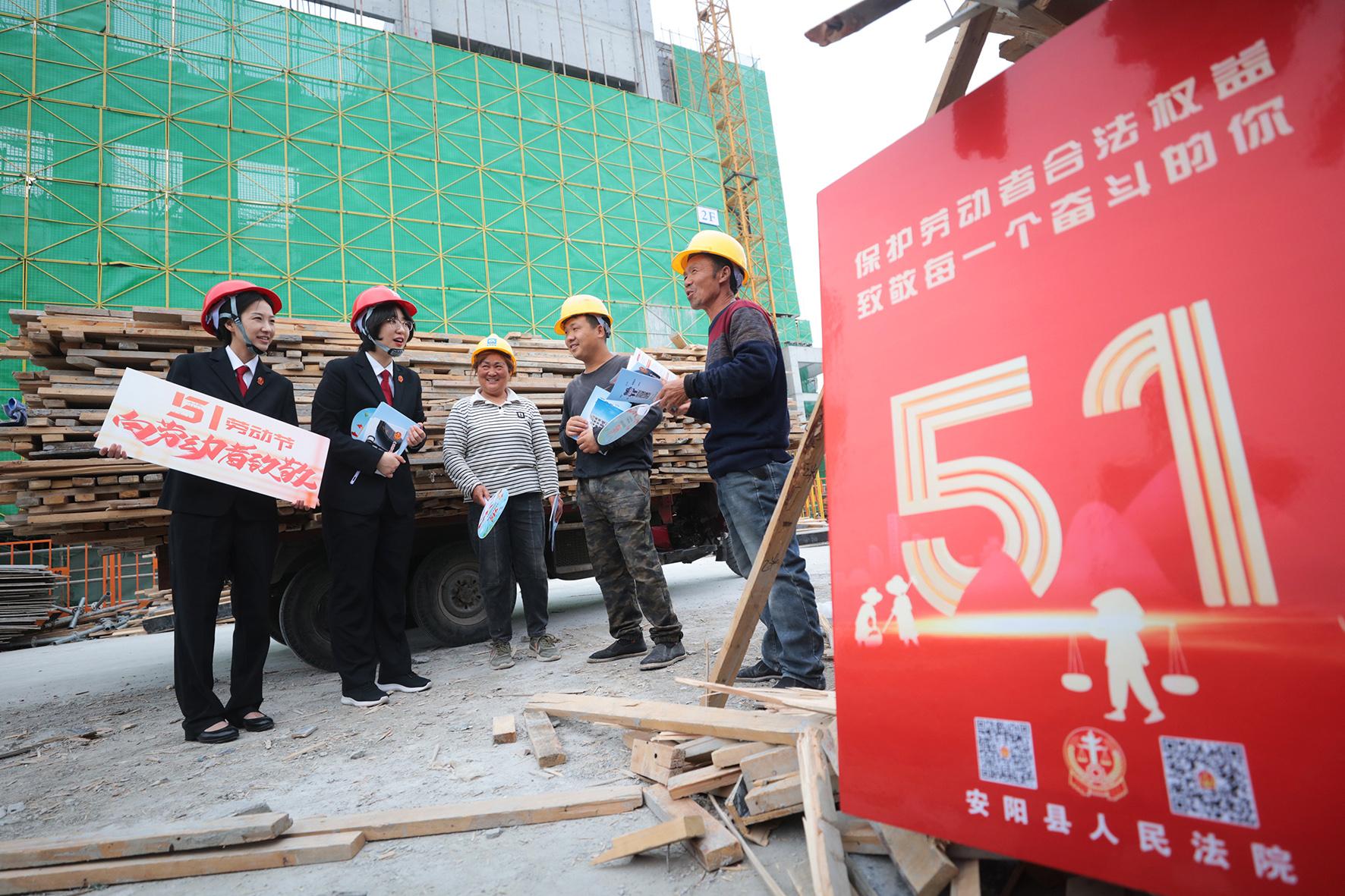 4月21日,河南省安陽縣人民法院組織干警深入轄區(qū)建筑工地開展以“保護勞動者合法權益 致敬每一個奮斗的你”為主題的法治宣傳活動。