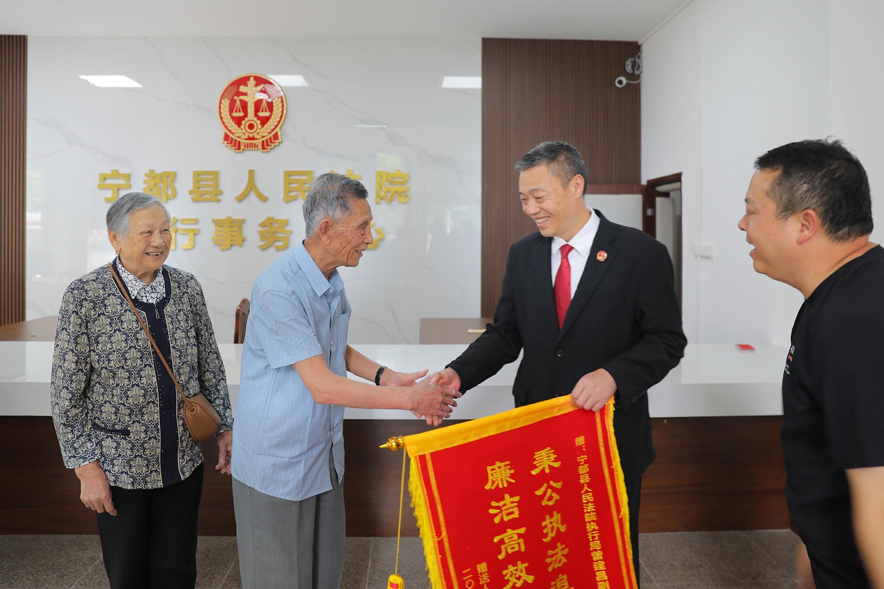“十年了,這筆錢終于回來了,真的太感謝你們了!”5月7日,93歲的郭某來到江西省寧都縣人民法院,將一面印有“秉公執(zhí)法追欠款 廉潔高效護民權”的錦旗送到執(zhí)行局干警手中。