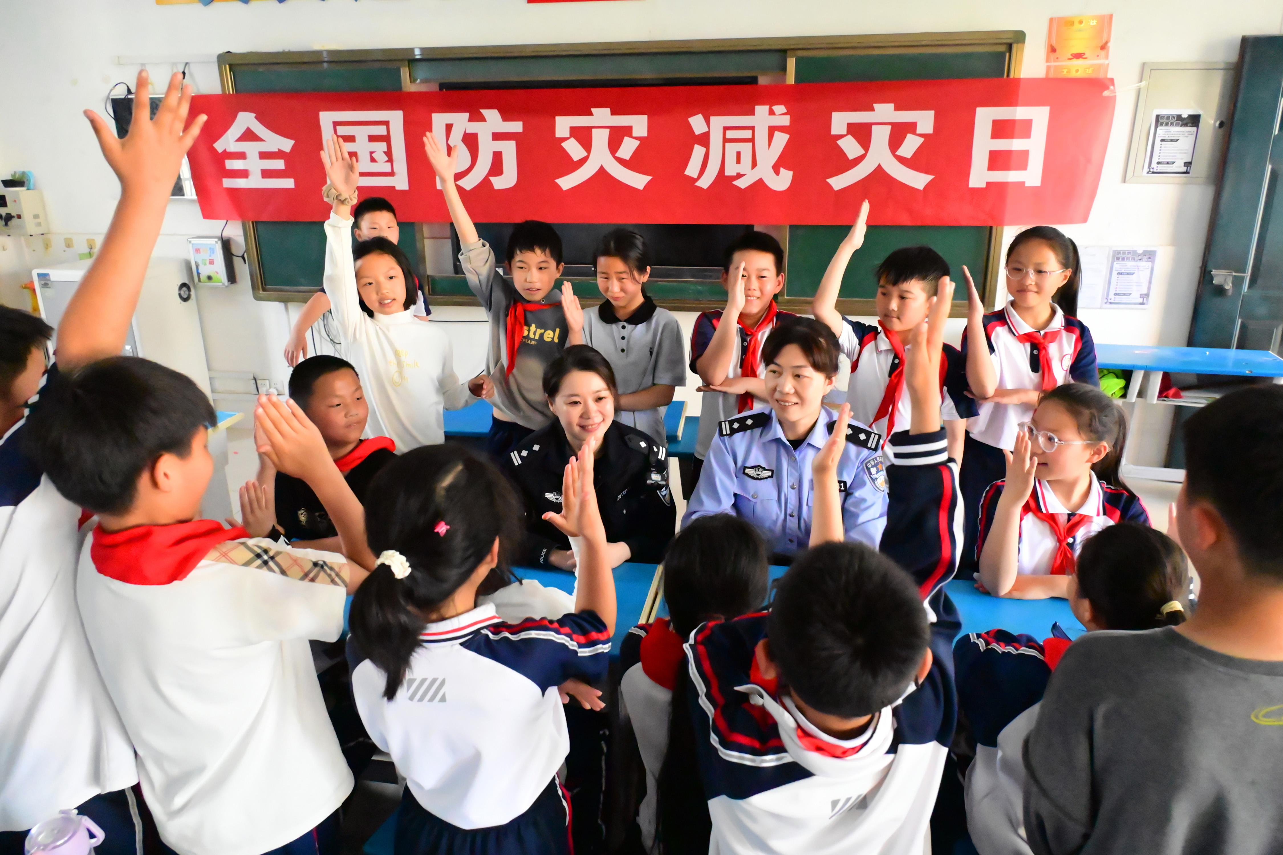 5月9日,安徽省蚌埠市固鎮(zhèn)縣公安局谷陽派出所民警在第一小學(xué)向?qū)W生們講解地震、水災(zāi)、火災(zāi)等各類自然災(zāi)害的避險方法。