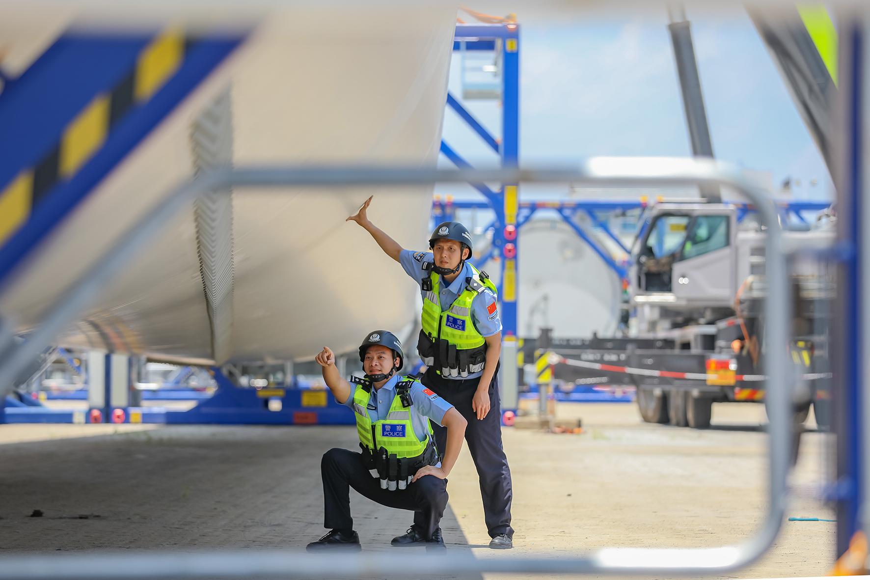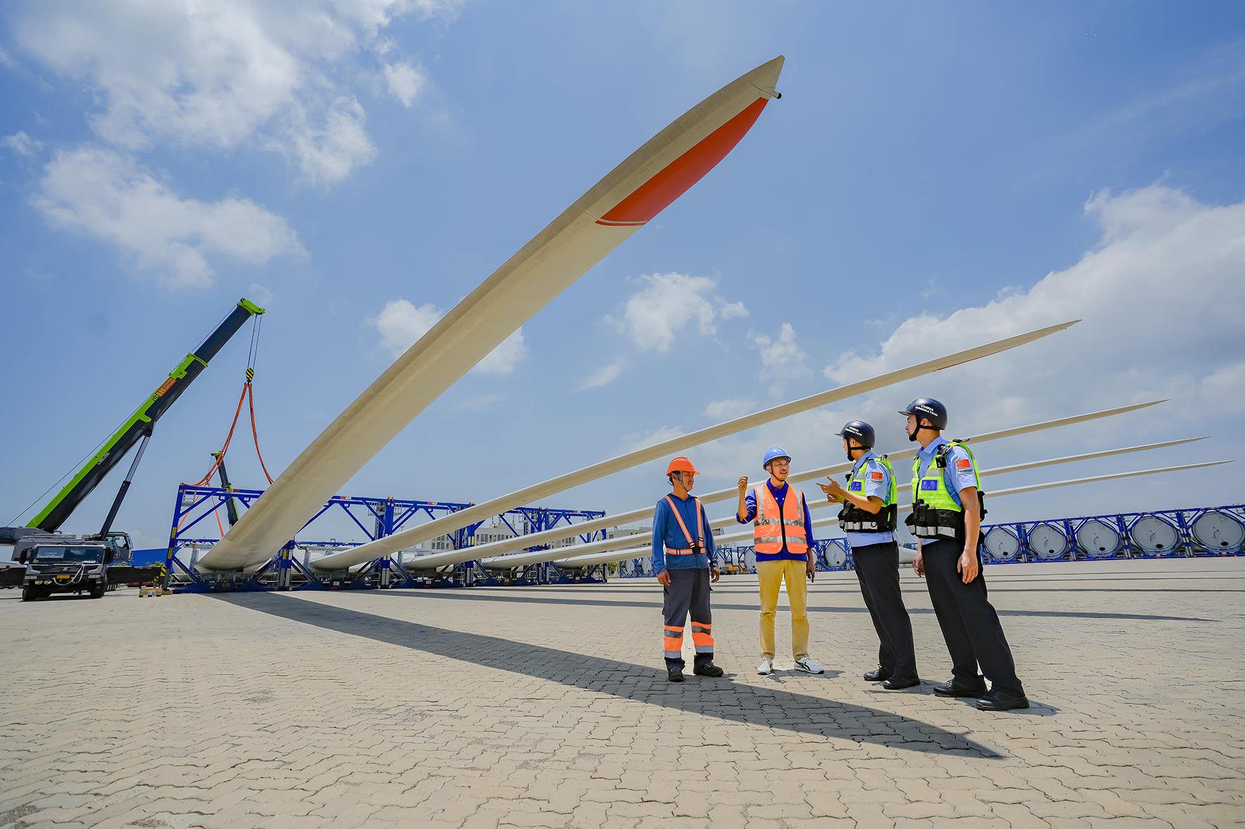 5月13日,福建省福州港江陰港區(qū),廈門邊檢總站福清邊檢站落實(shí)風(fēng)電設(shè)備裝運(yùn)通關(guān)定制化服務(wù),實(shí)現(xiàn)單船在港作業(yè)時(shí)間從3天縮短至2天,確保風(fēng)電設(shè)備裝運(yùn)“零延時(shí)”。