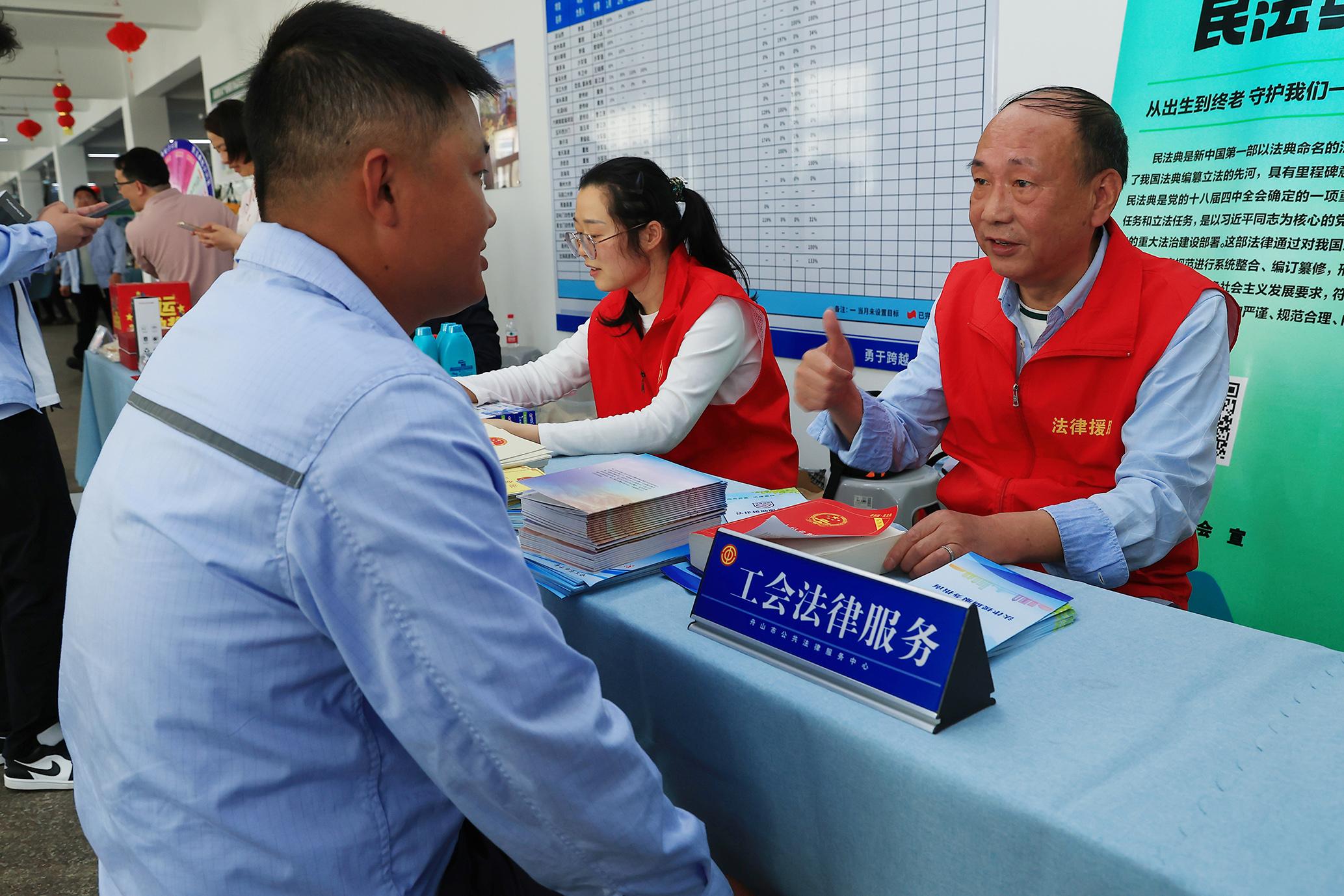 5月14日,浙江舟山市司法局、舟山市普法辦、舟山市總工會(huì)聯(lián)合舉辦“典亮生活·護(hù)航發(fā)展”民法典進(jìn)企業(yè)巡回宣講活動(dòng)。