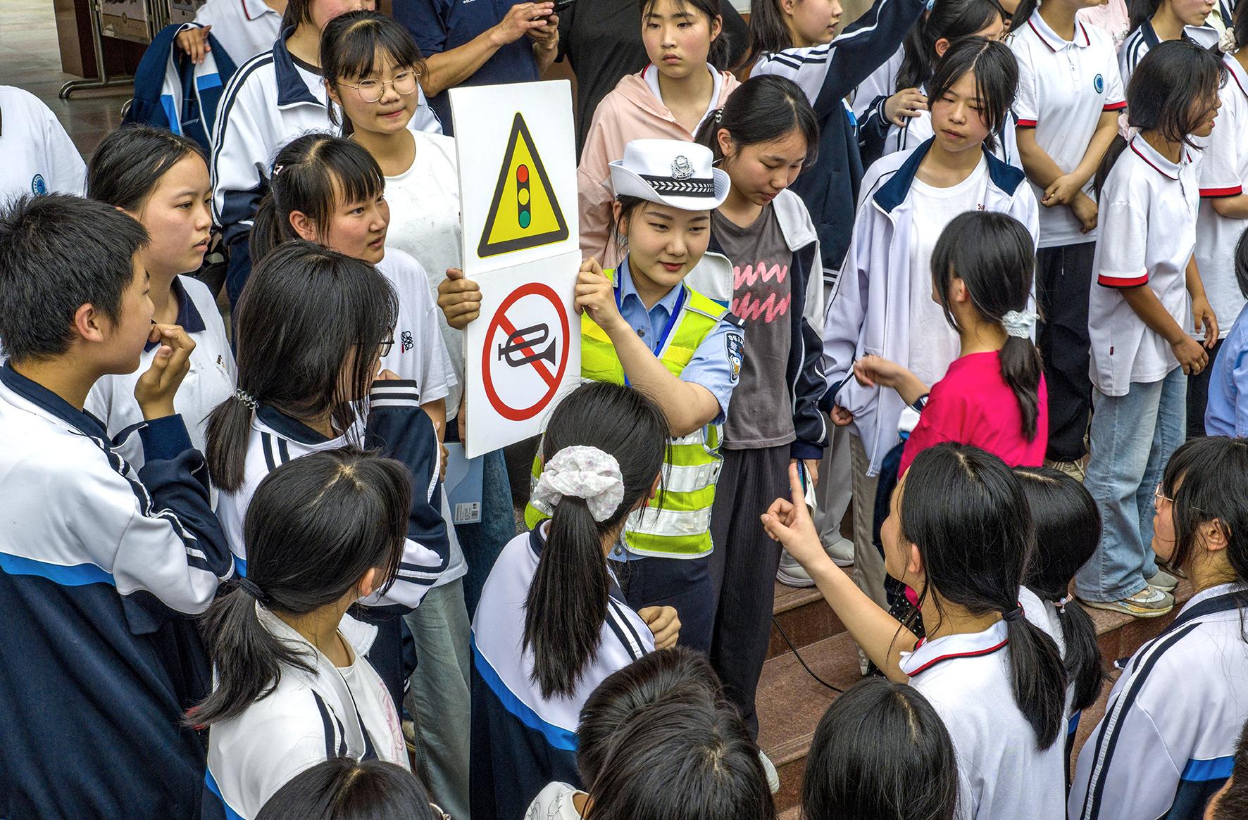 5月27日,安徽省合肥市廬江縣公安局交警大隊(duì)民警走進(jìn)金牛中學(xué),為同學(xué)們上了一堂生動(dòng)有趣的交通安全知識(shí)課。