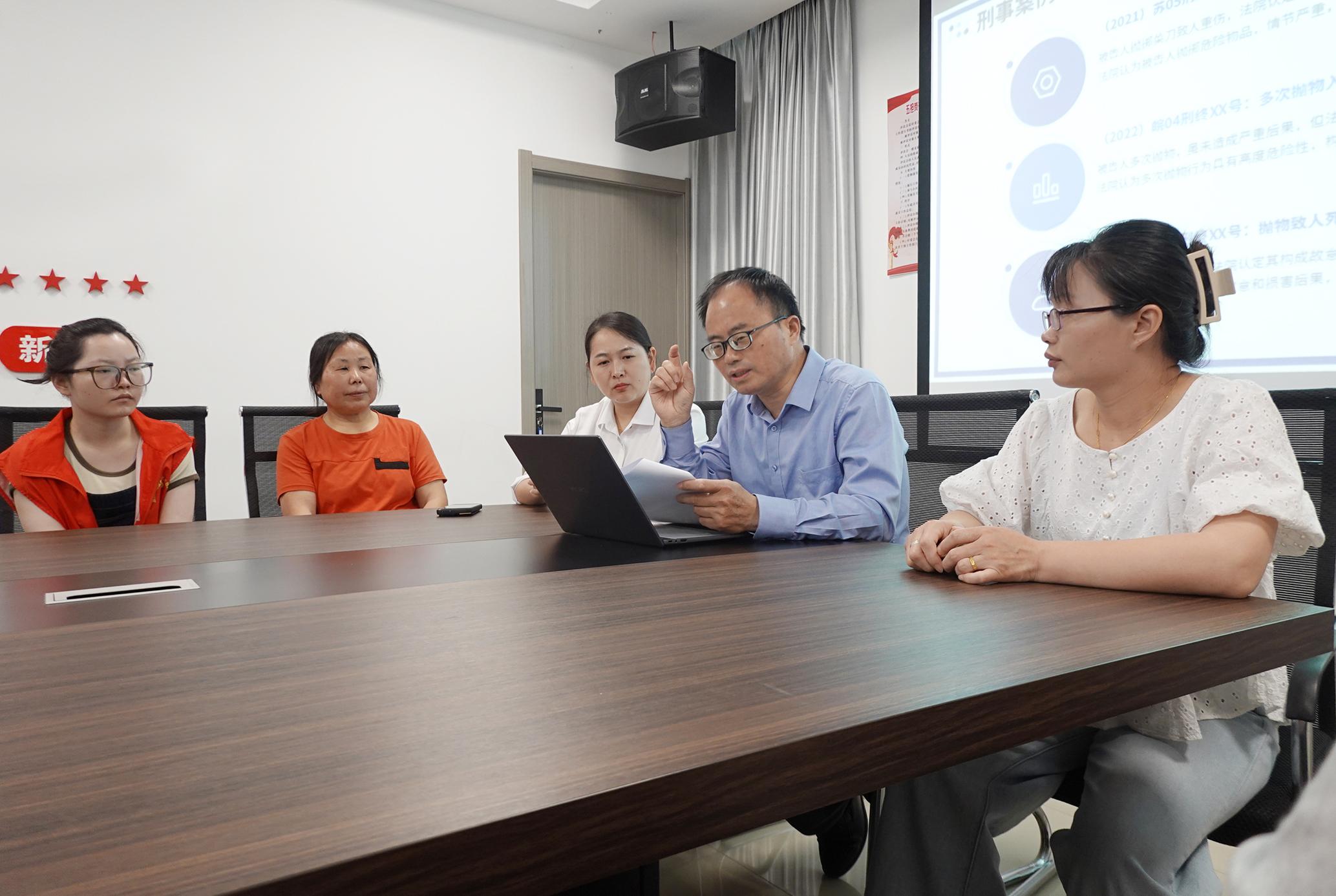 圖為律師結(jié)合典型案例解讀相關(guān)法律,并現(xiàn)場解答居民提問。