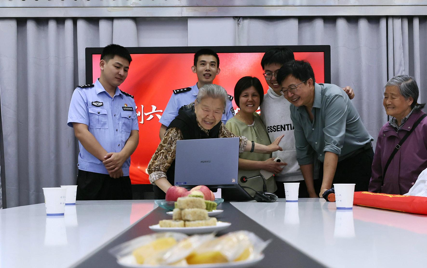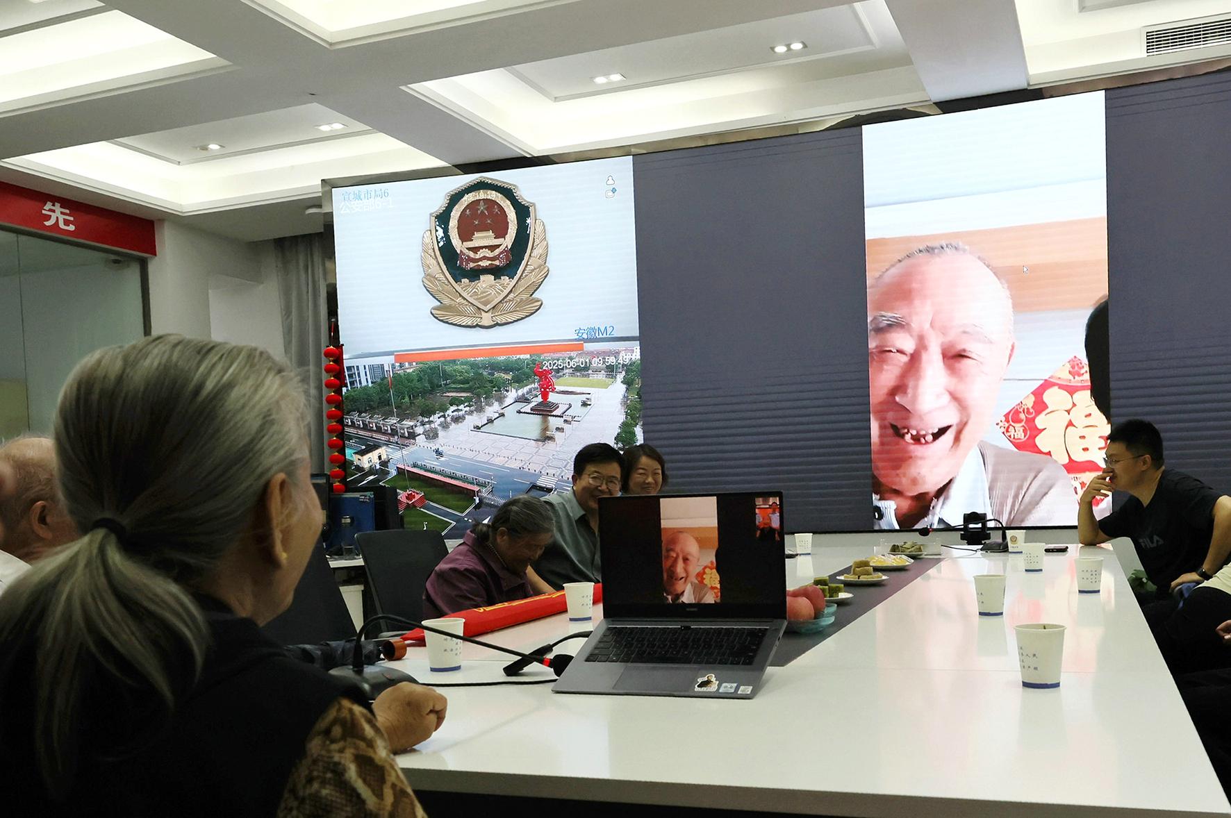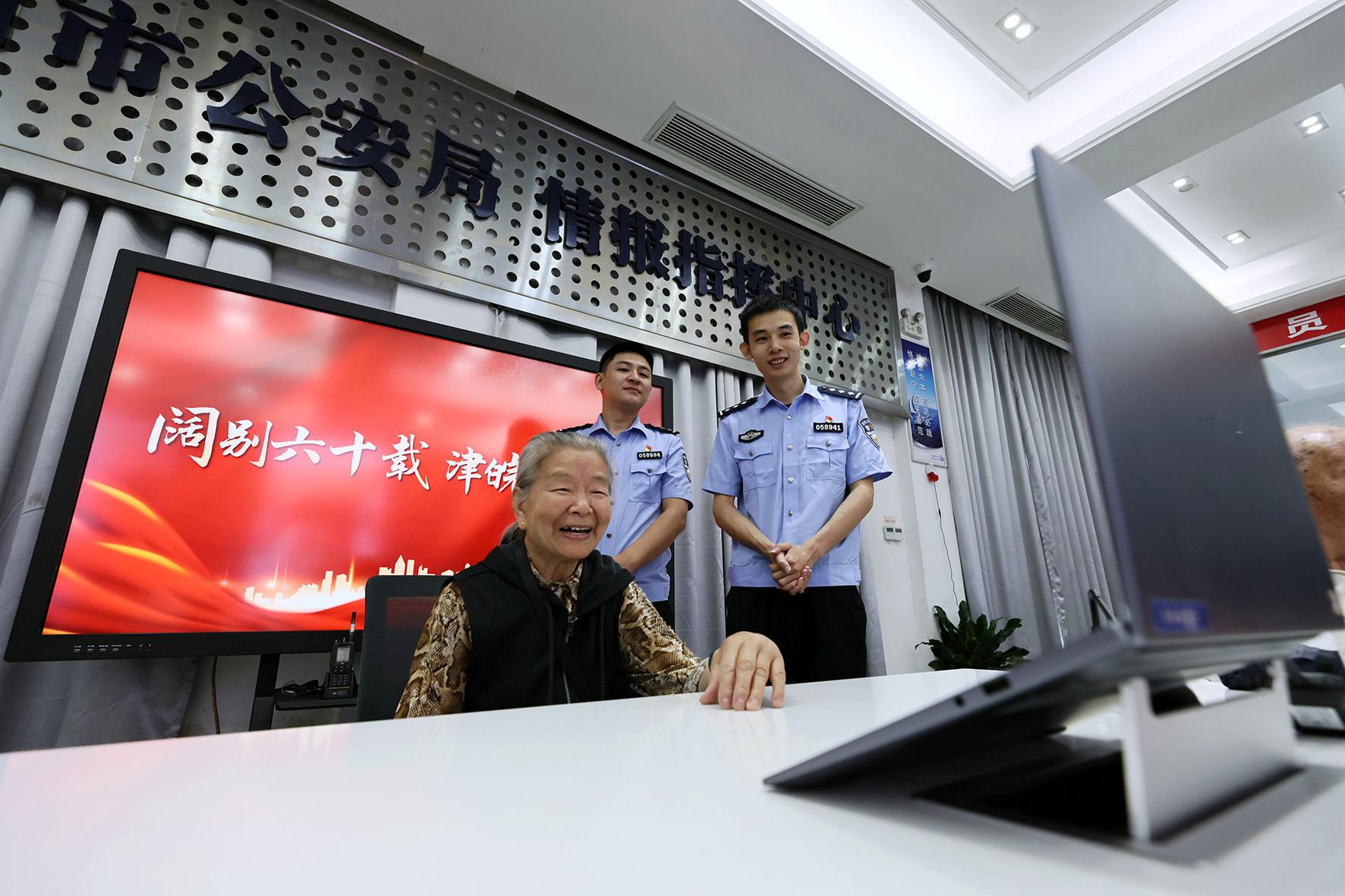 6月1日,79歲的高奶奶攜家人來到安徽省寧國市公安局指揮中心大廳,與遠在千里的天津親人云團圓。